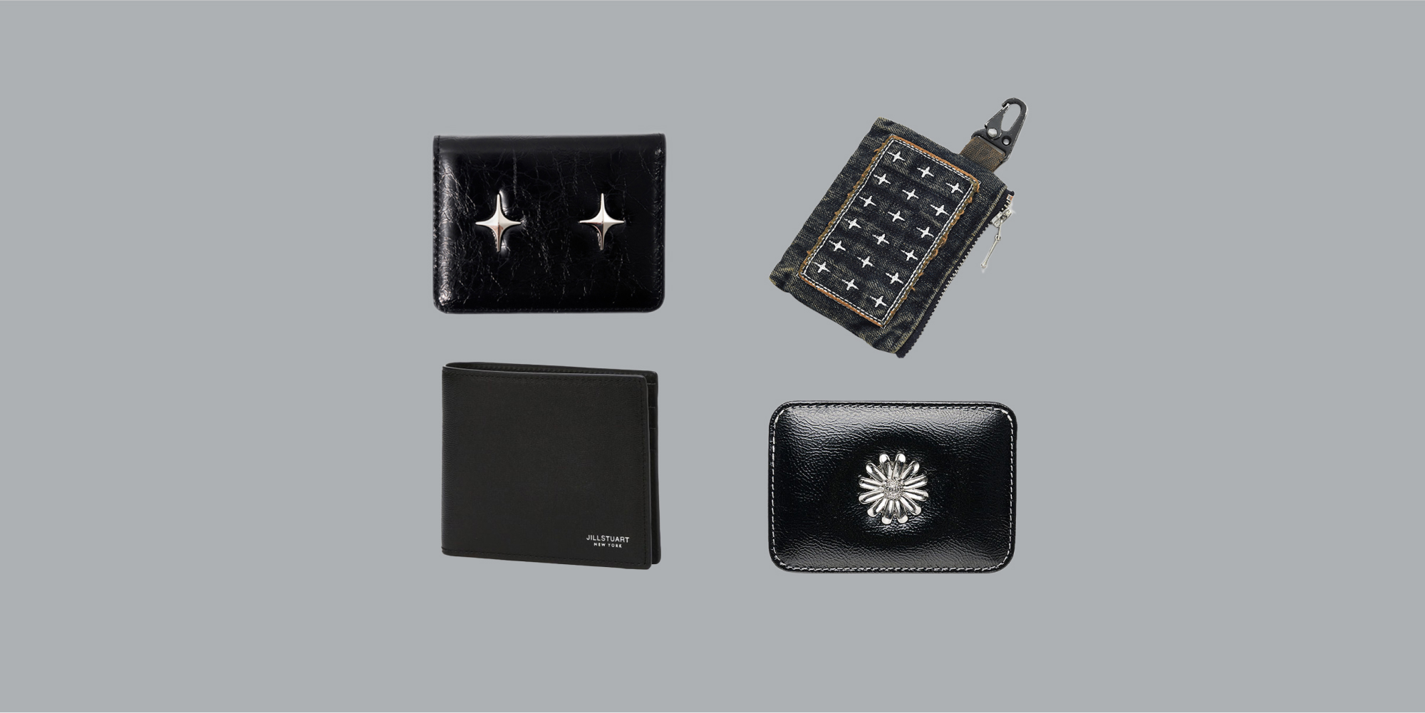 Karactor Patchwork Denim Card Wallet Vintage Black