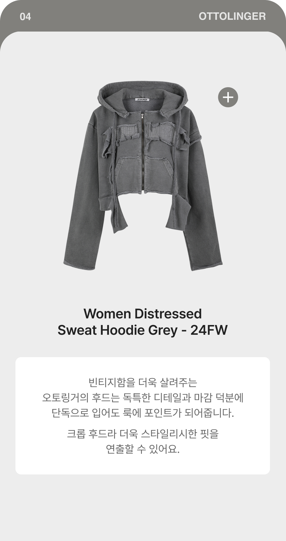 오토링거 우먼 디스트레스드 오버사이즈 티셔츠 그레이 - 24FW