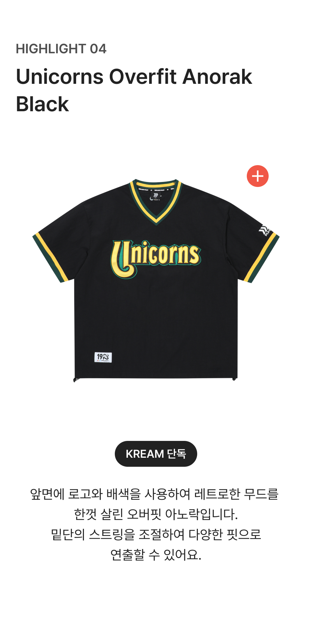 윌비플레이 유니콘스 블랙 오버핏 반팔 아노락