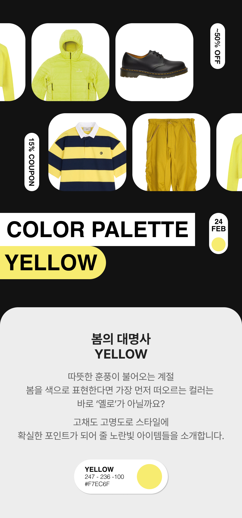44 레이블 그룹 UV 티 옐로우 UV프로텍스 블랙 - 25SS