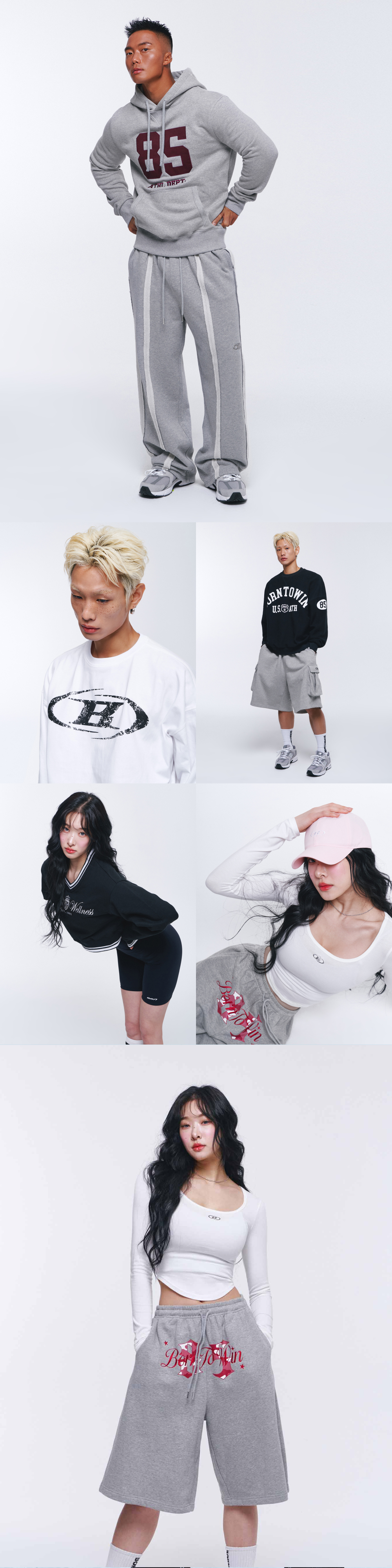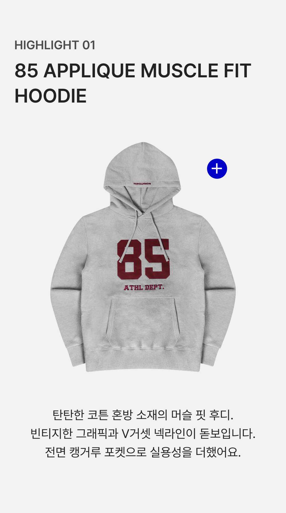 본투윈 85 어플리케 머슬핏 후디 멜란지 그레이