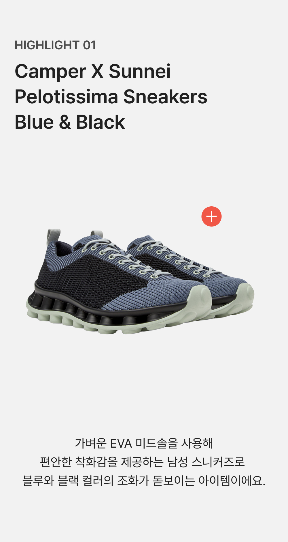 캠퍼 X 써네이 남성 펠로티시마 스니커즈 블루 앤 블랙 컬러