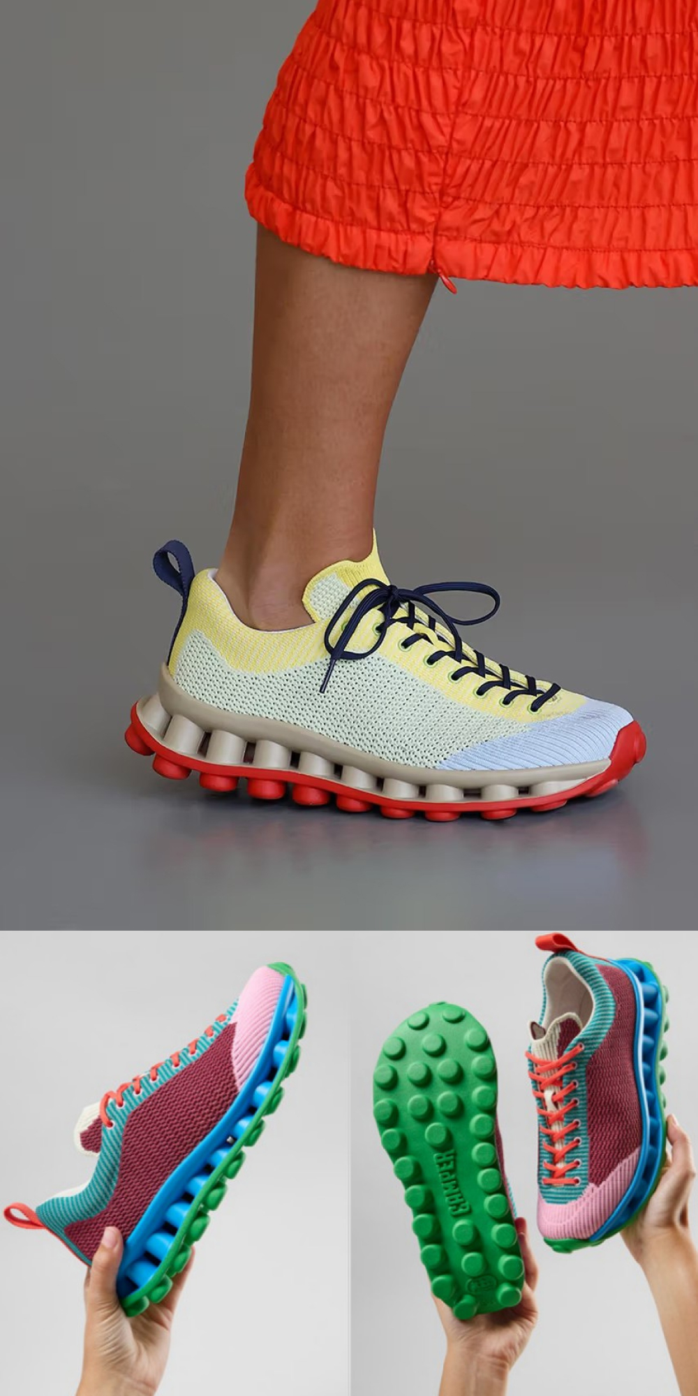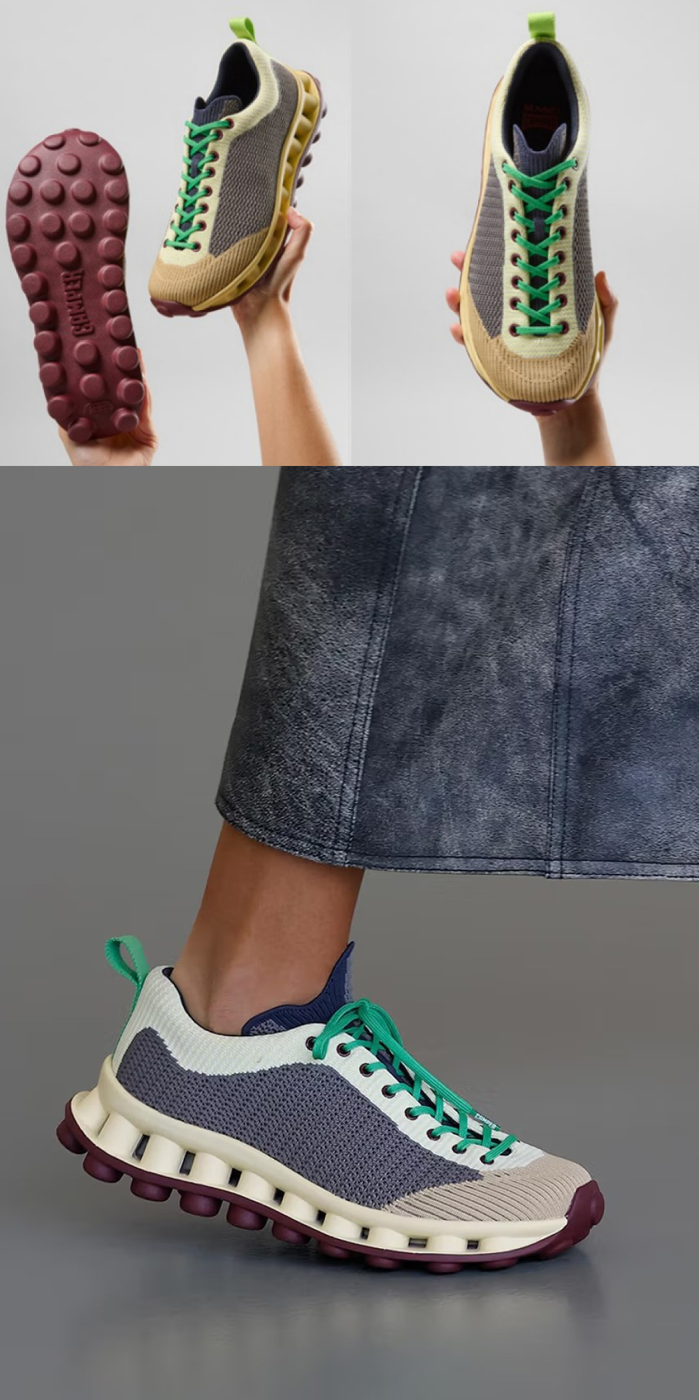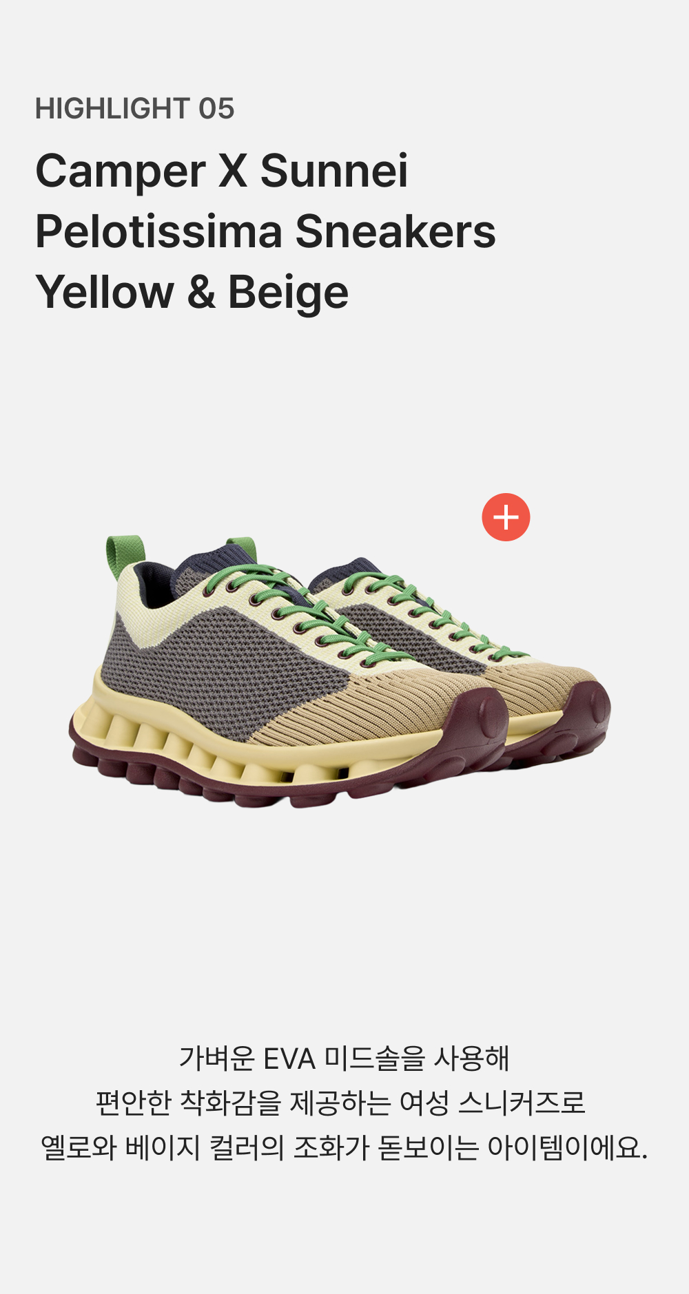 캠퍼 X 써네이 여성 펠로티시마 스니커즈 옐로우 앤 베이지 컬러