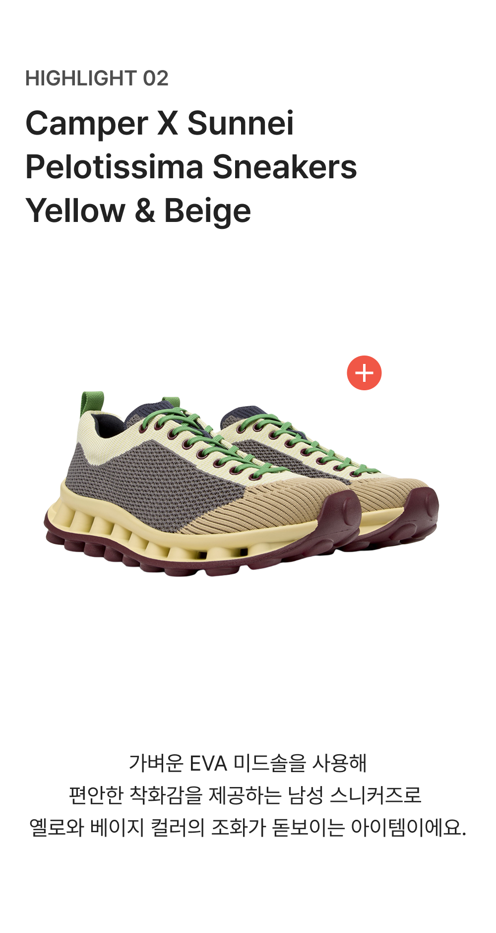 캠퍼 X 써네이 남성 펠로티시마 스니커즈 옐로우 앤 베이지 컬러