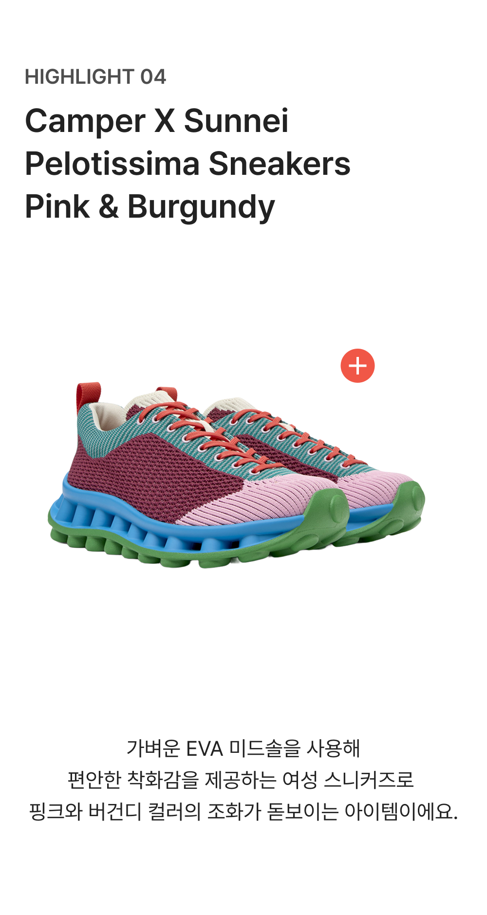캠퍼 X 써네이 여성 펠로티시마 스니커즈 핑크 앤 버건디 컬러