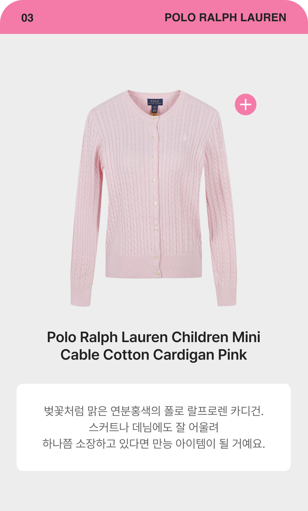 [30%적립] 폴로 랄프 로렌 칠드런 미니 케이블 코튼 가디건 핑크