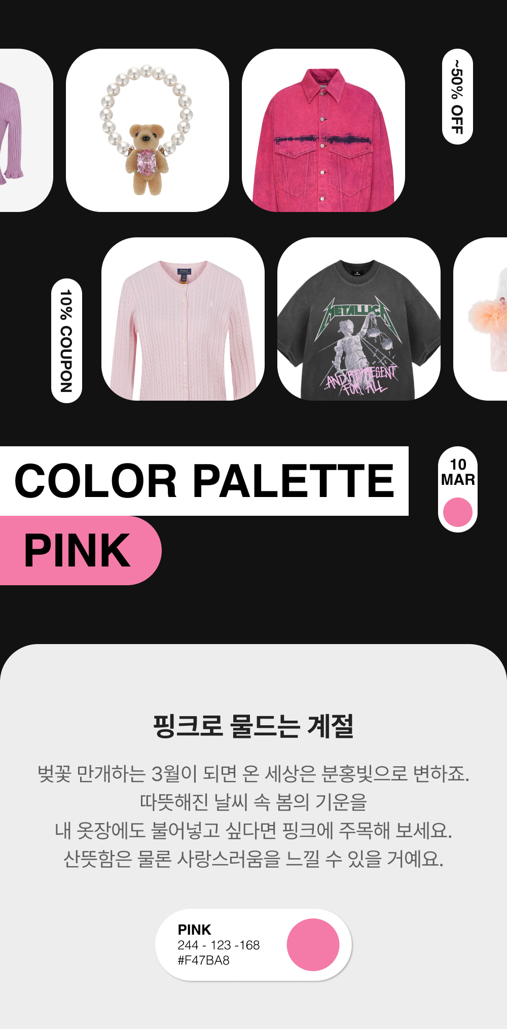 벌스데이수트 핸드 스티치 티셔츠 핑크