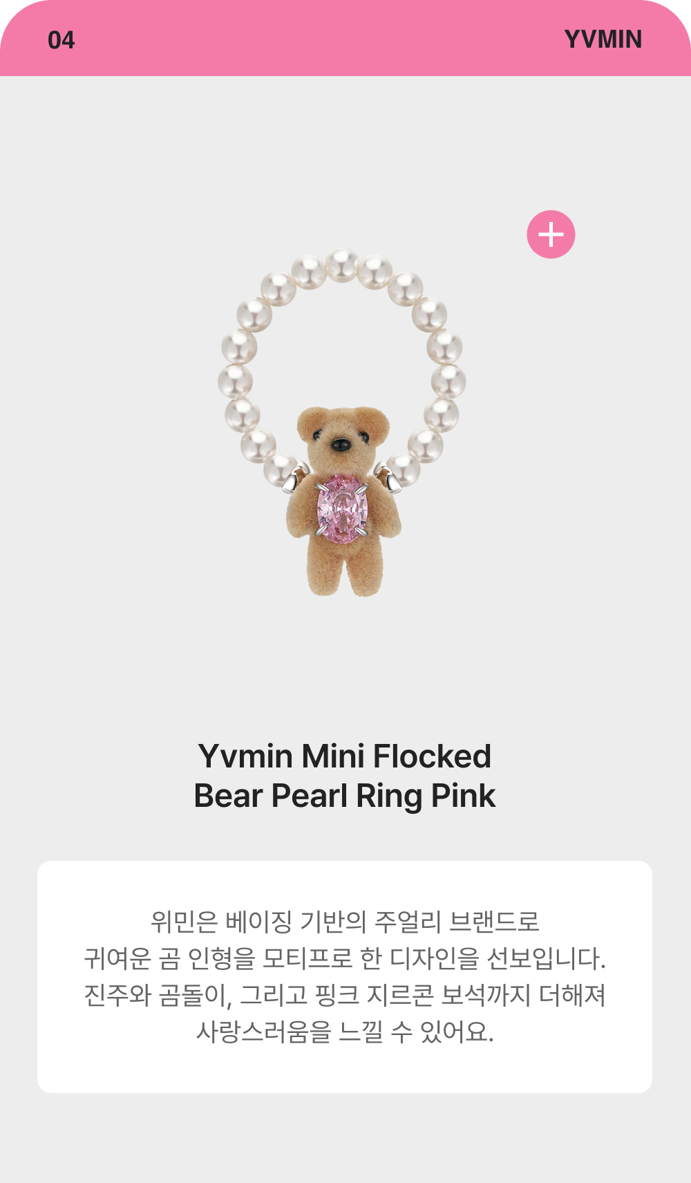 미쏘마 젤리 하트 젬스톤 링 핑크 쿼츠 - 24FW