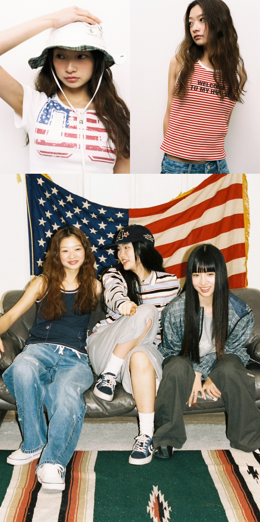 에이이에이이 유에스에이 배너 헨리넥 티 멜란지 그레이