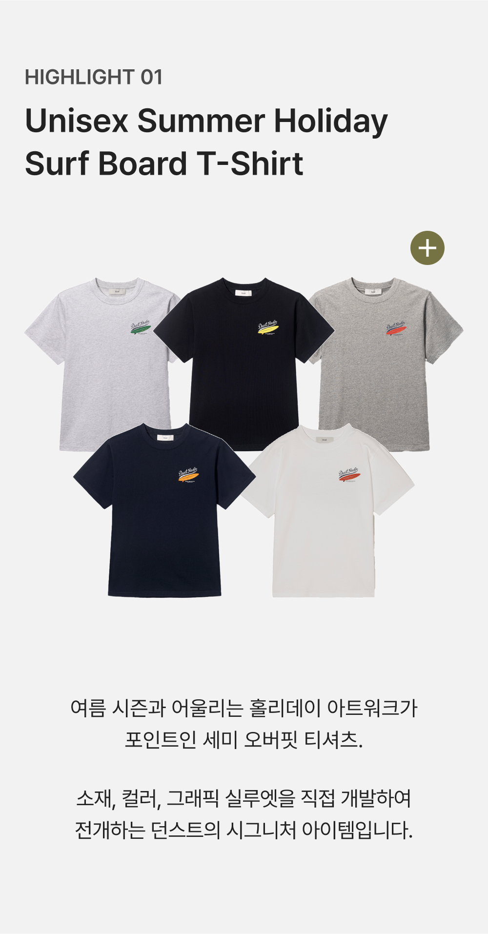 던스트 유니섹스 써머 홀리데이 서핑 보드 티셔츠 멜란지 그레이