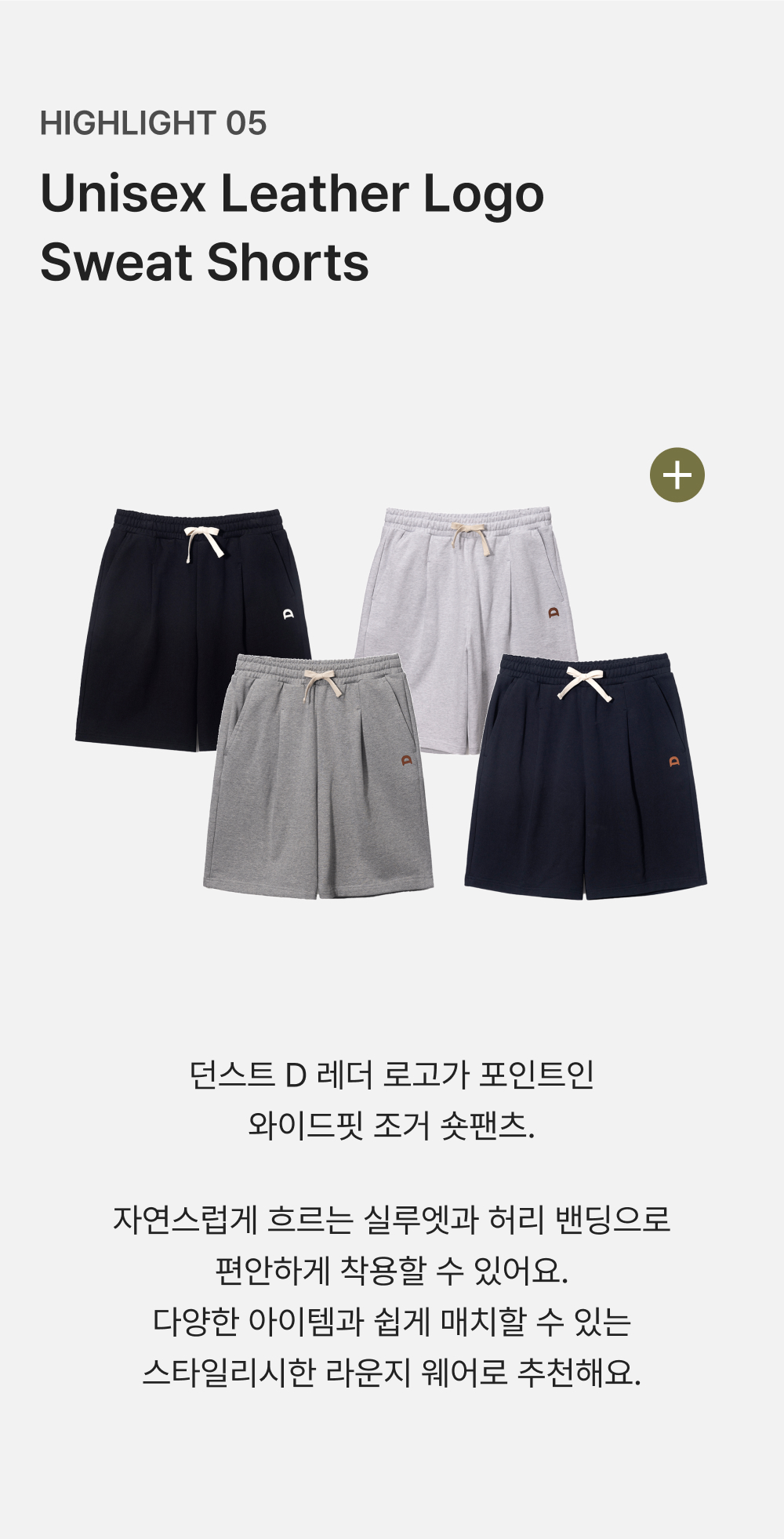 던스트 유니섹스 레더 로고 스웻 쇼츠 라이트 멜란지 그레이