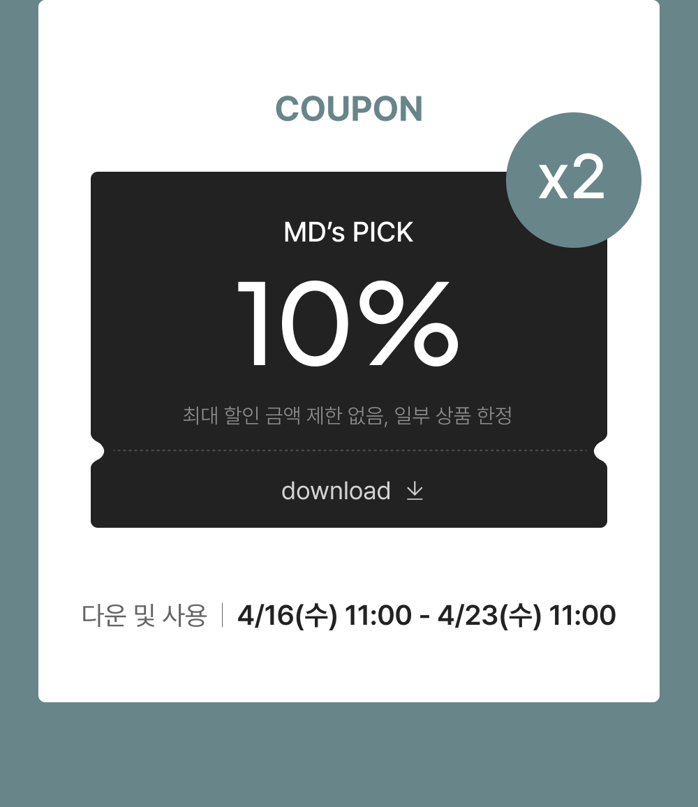 - 각 쿠폰은 발급 기간 내 계정 당 2회씩 다운 가능합니다.