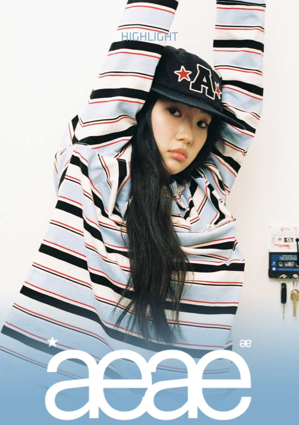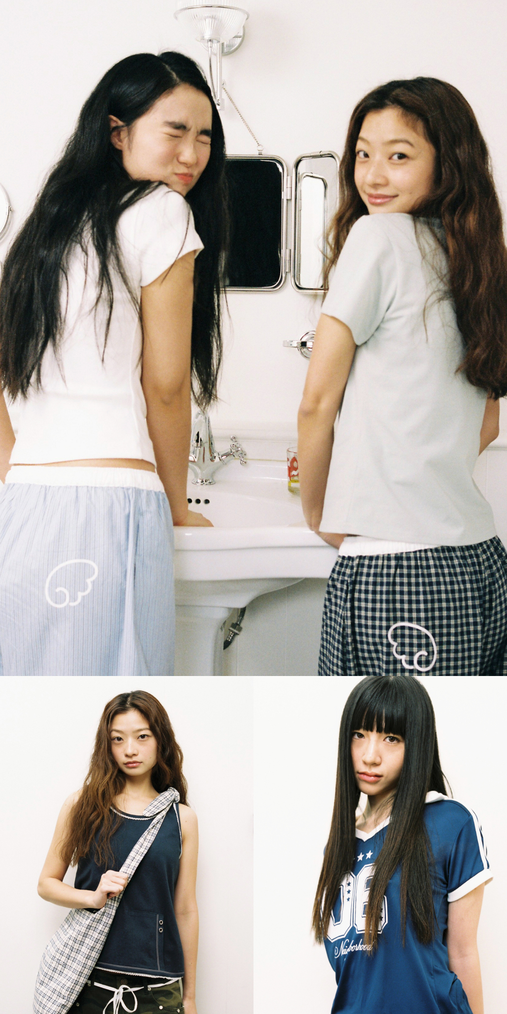 에이이에이이 웹 로고 크롭 티셔츠 화이트 & 블루
