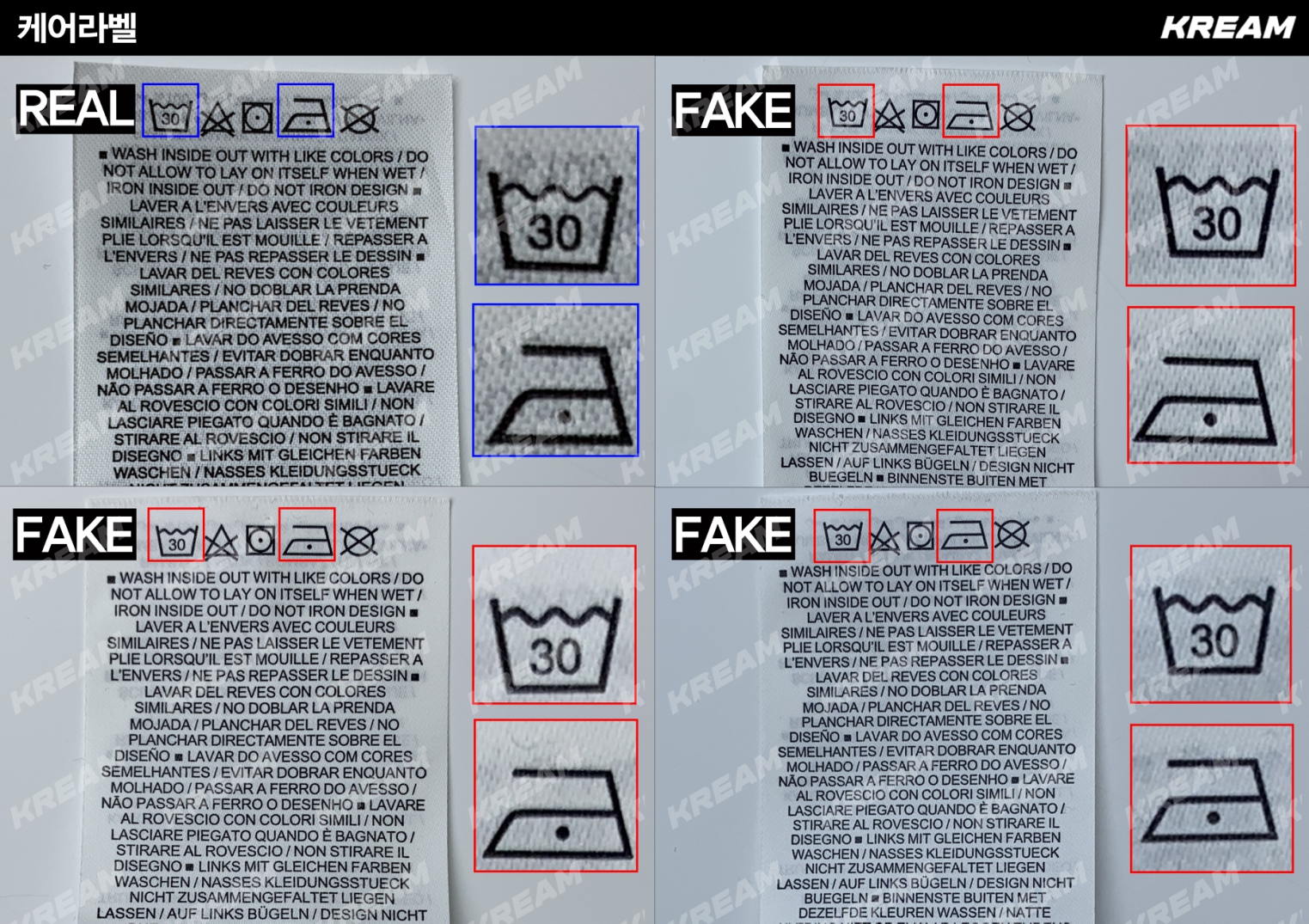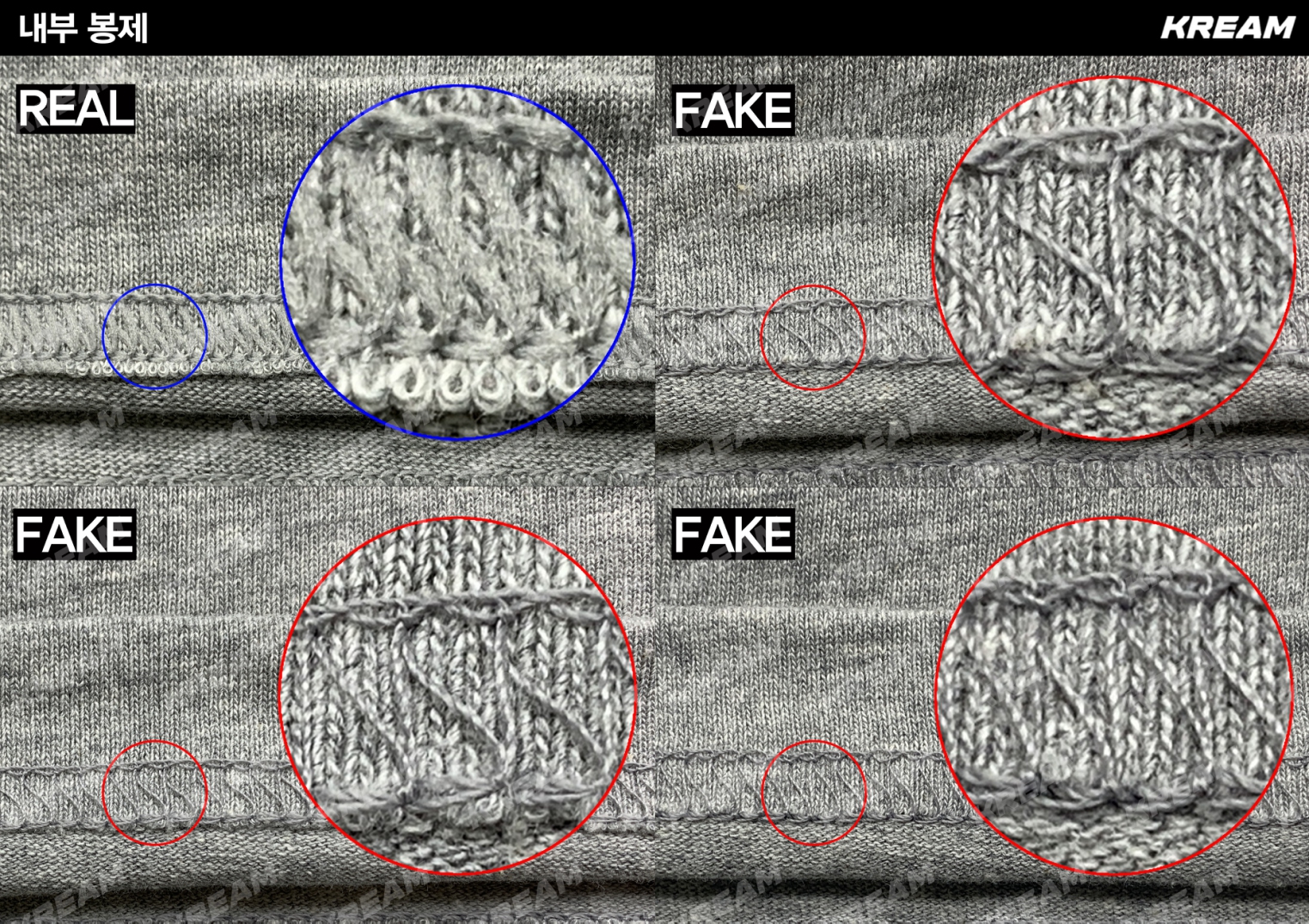 • 커버 스티치의 방식과 실의 퀄리티가 정품과 다름