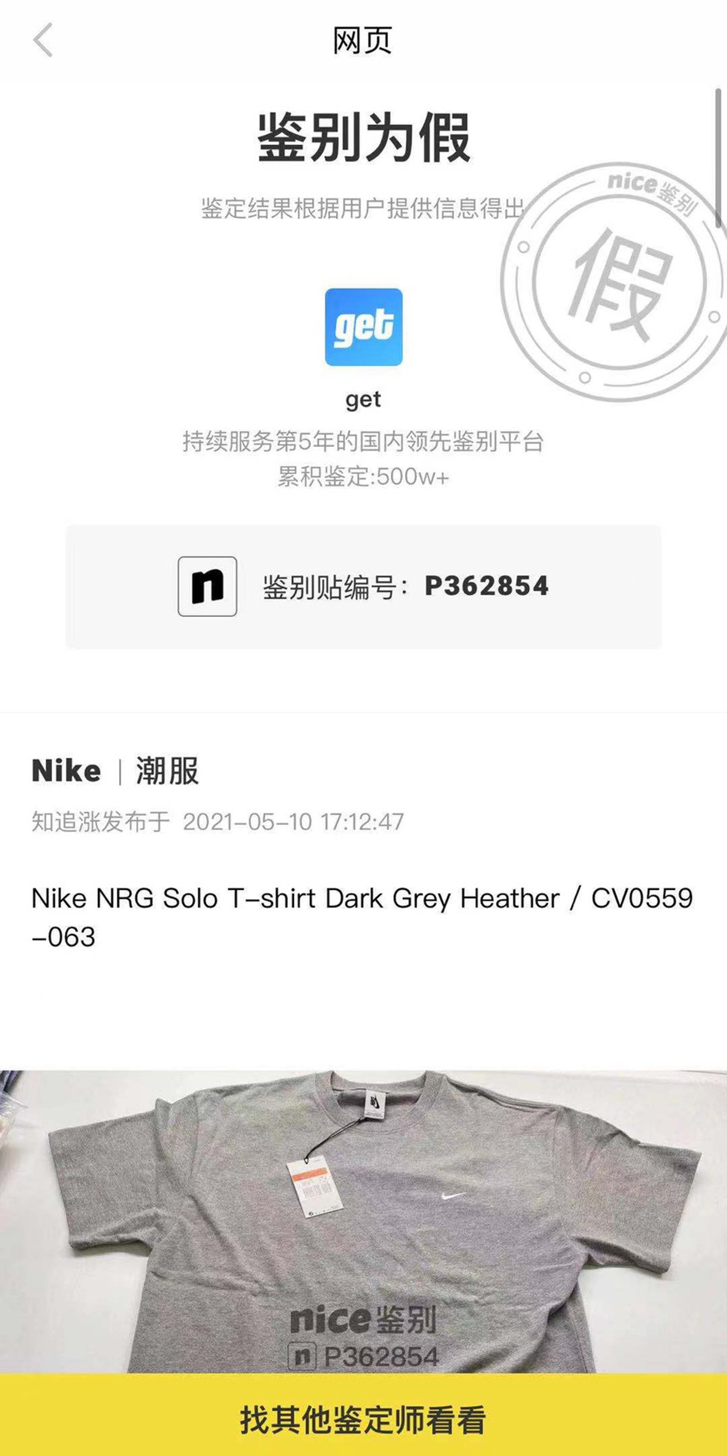 KREAM은 현재 가품이 발견되고 있는 동일 유통 경로로 동일개체를 다수 확보하여 중국 거래 플랫폼인 NICE사에 정가품 감정을 의뢰, 가품 판정을 받은 사실이 있습니다.
