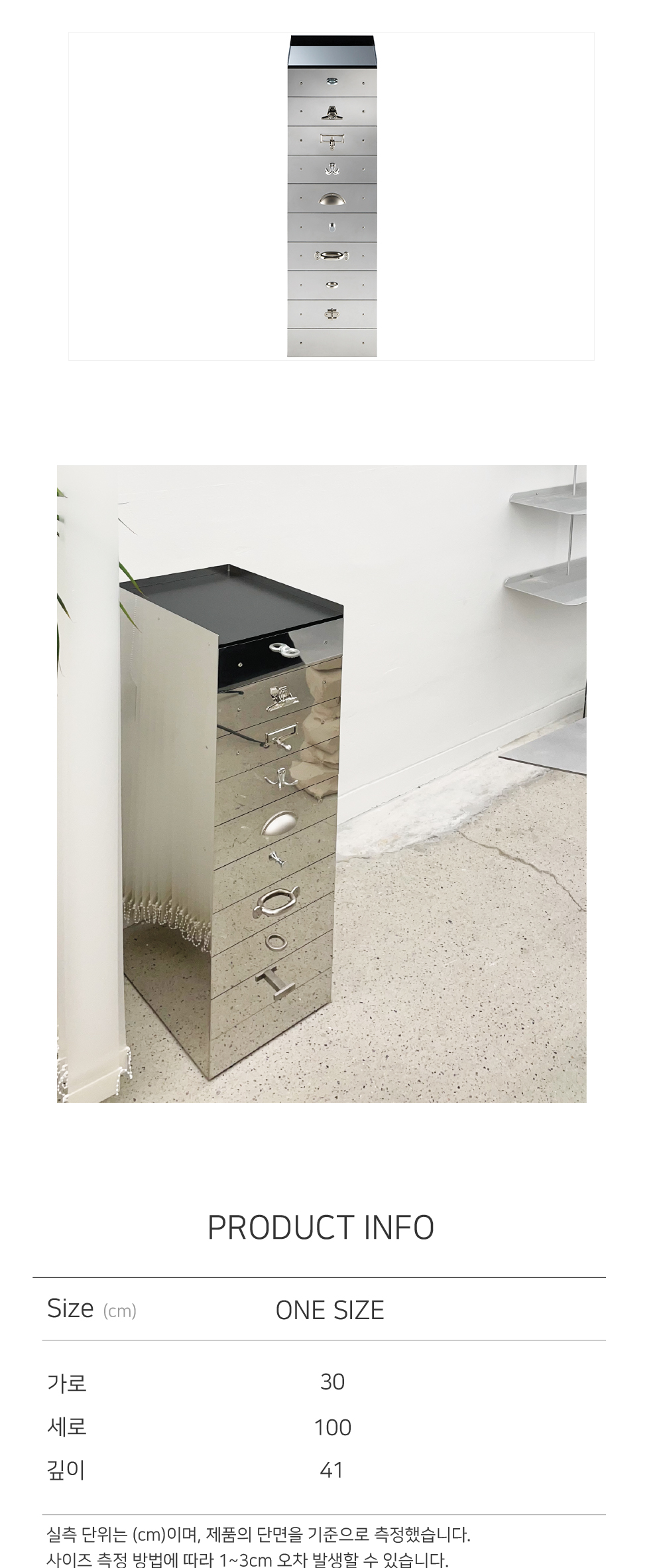 실측 단위는 cm이며, 제품의 단면을 기준으로 측정했습니다.