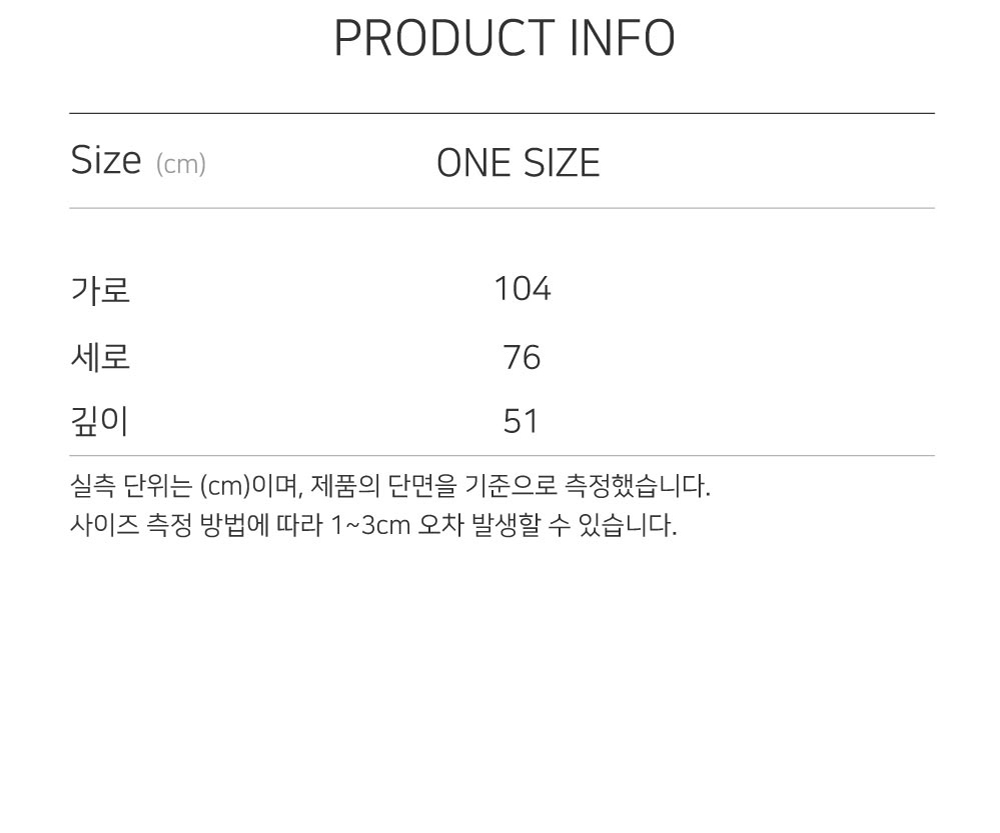측정 방법에 따라 사이즈에 일부 오차가 있을 수 있습니다.