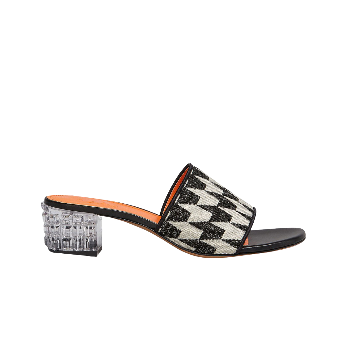 (W) Marni Houndstooth Motif Lurex Sabot Black Cream