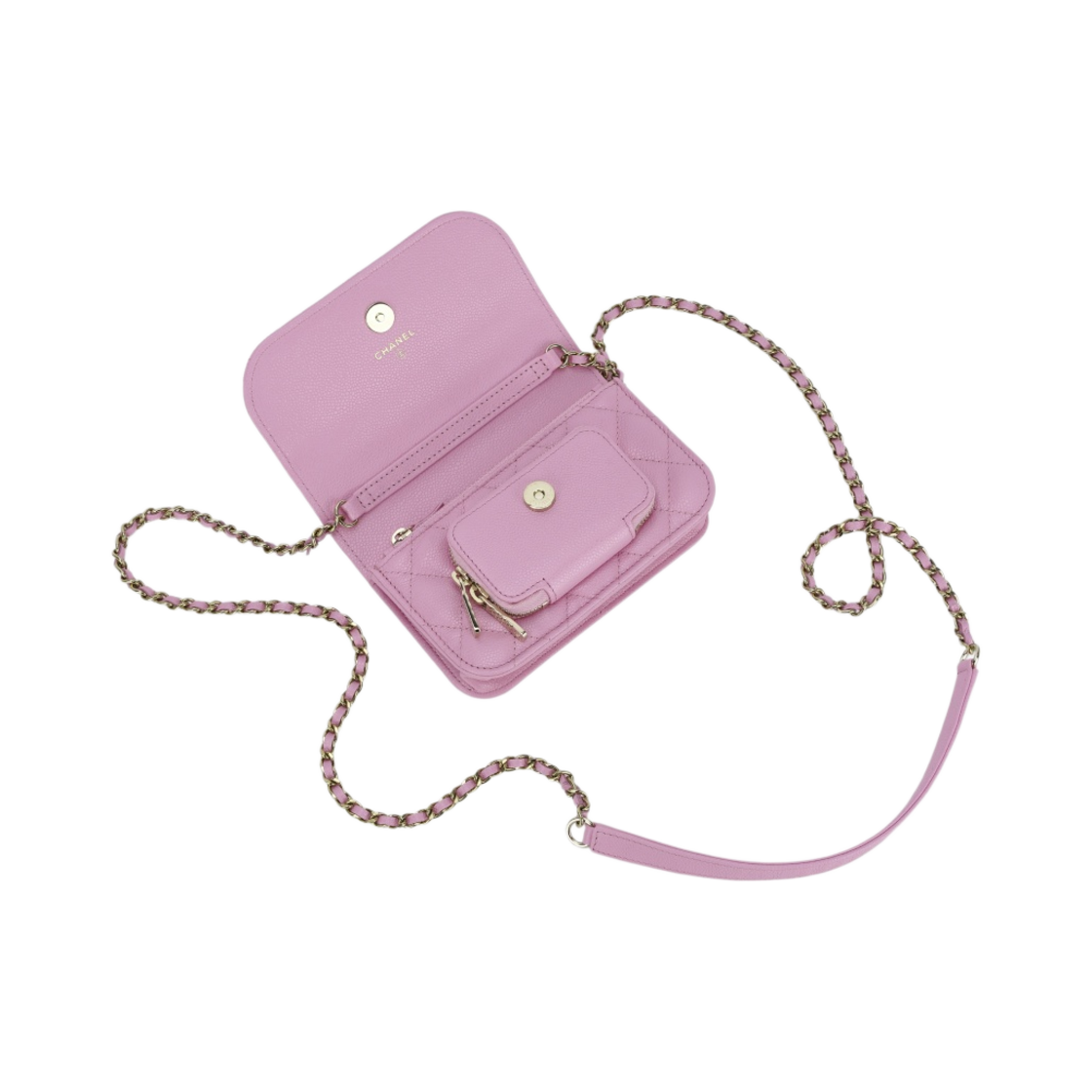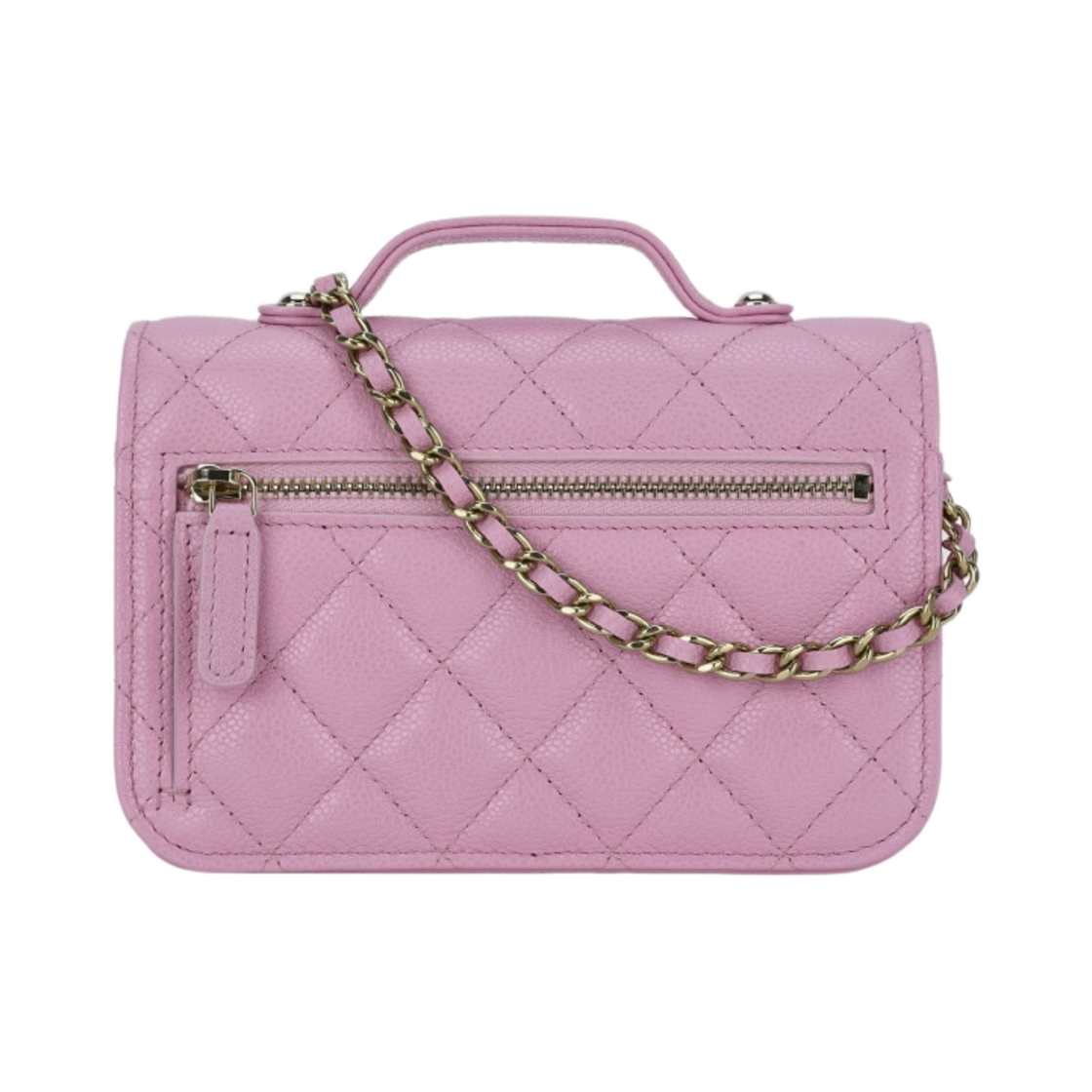 샤넬 체인 달린 미니백 그레인드 카프스킨 & 골드 메탈 라일락