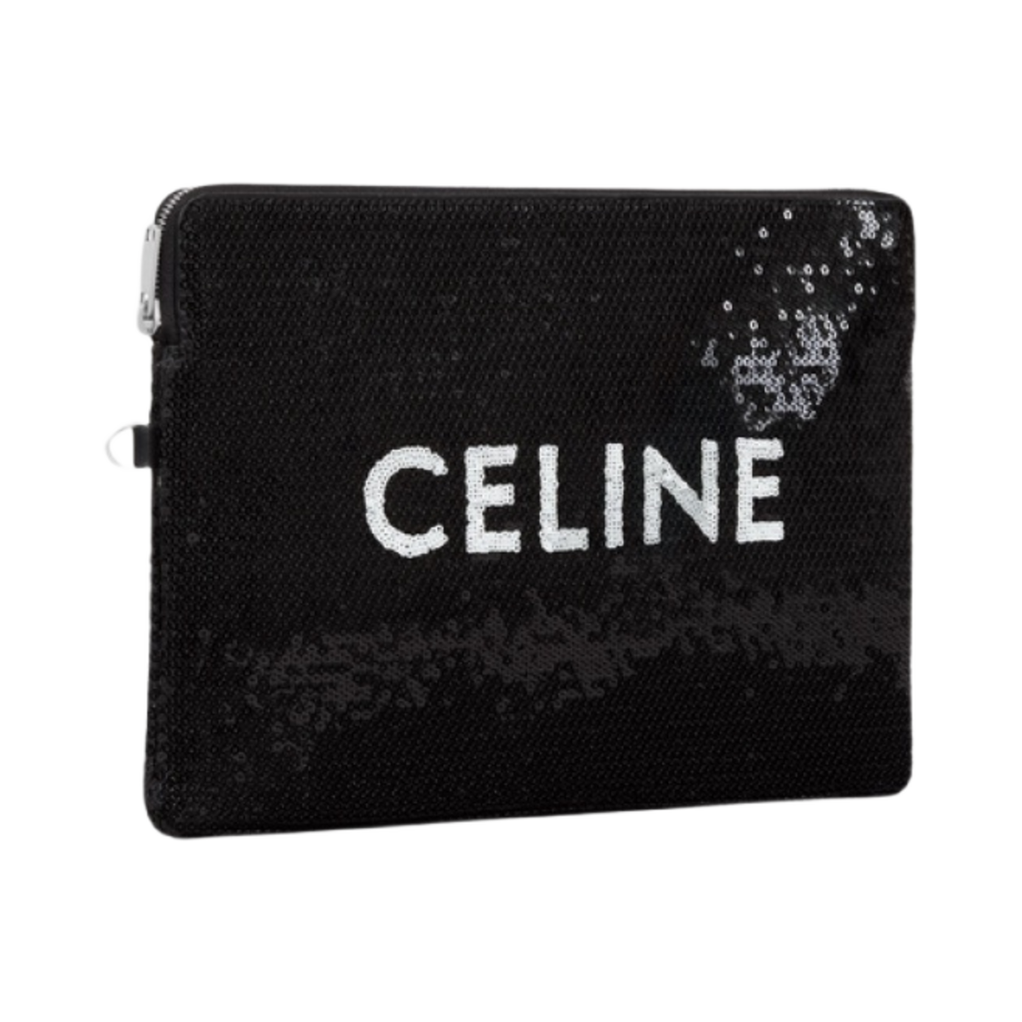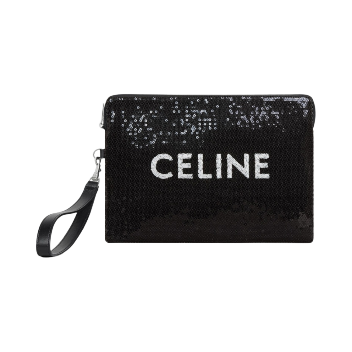 셀린느 시퀸 & 카프스킨 스트랩 스몰 파우치 블랙