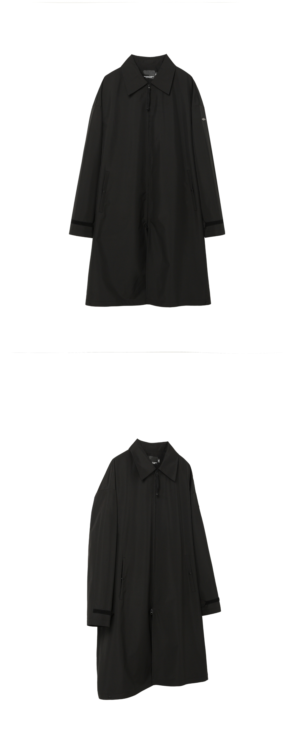 어깨선이 드롭된 'A' 오버핏 실루엣이며, 사이드 여밈을 사용해 'H' 오버핏 실루엣으로 선택적 실루엣 연출이 가능한 롱 기장감의 착용 시 편안한 고프코어 스타일의 오버핏 코트입니다.