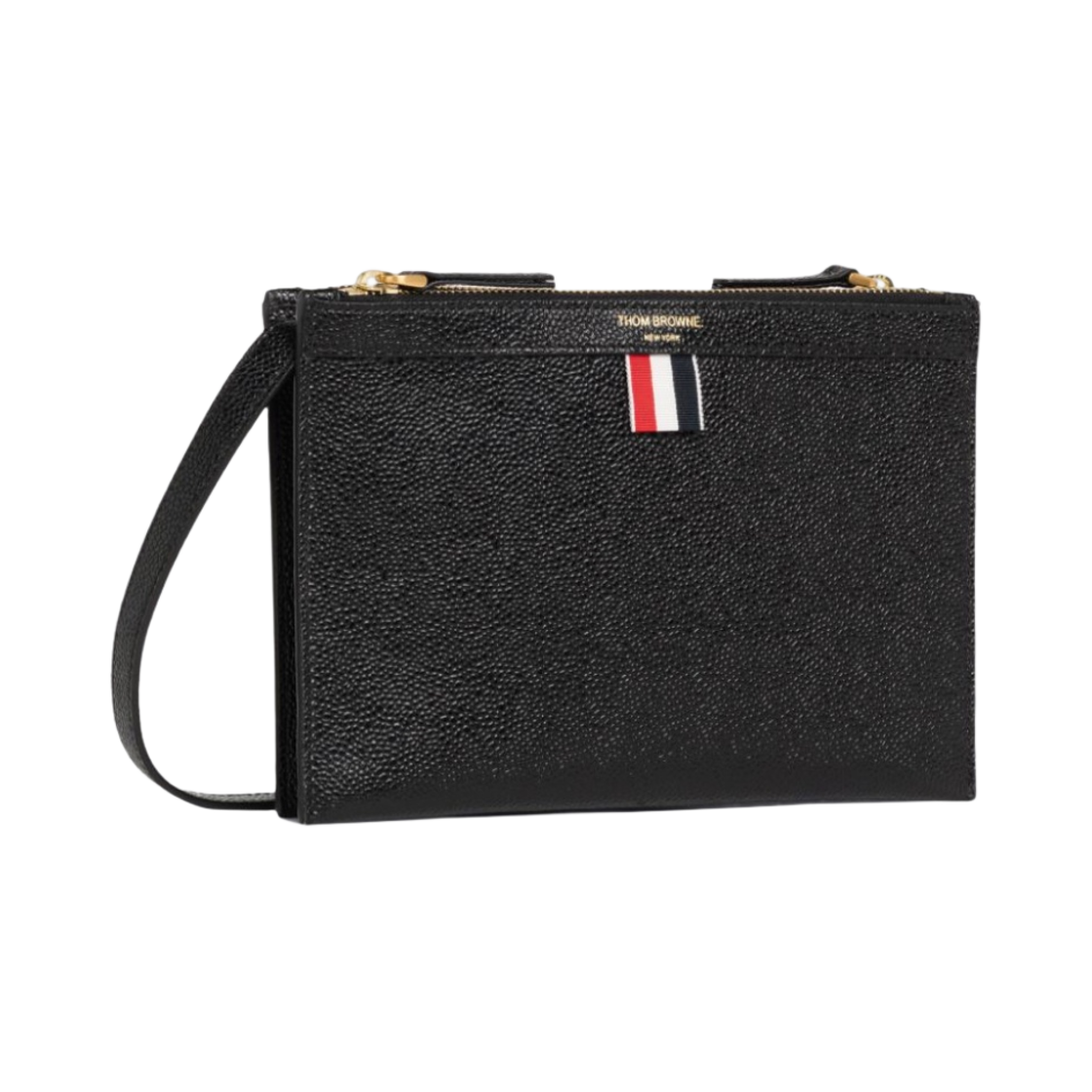 톰브라운 페블 그레인 레더 스몰 도큐먼트 홀더 크로스바디 블랙