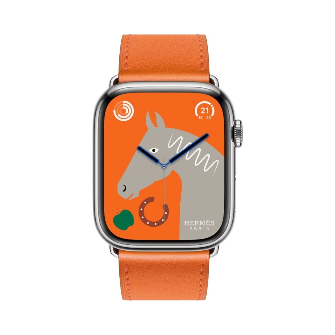 애플 워치 8 에르메스 45mm 실버 스테인리스 스틸 케이스 싱글 투어 오렌지 (국내 정식 발매 제품)