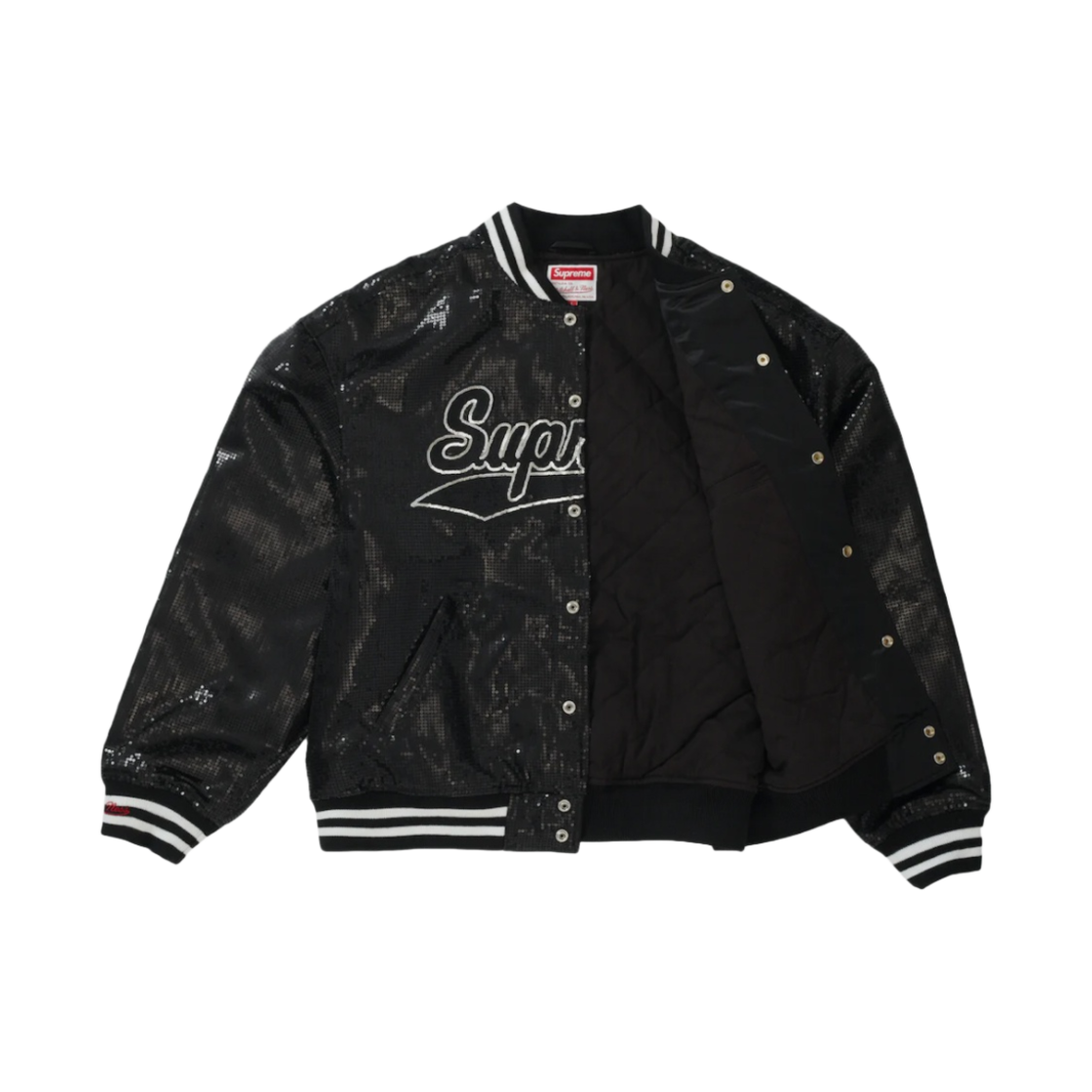 Supreme Mitchell & Ness Sequin Varsity Jacket Black - 23SS