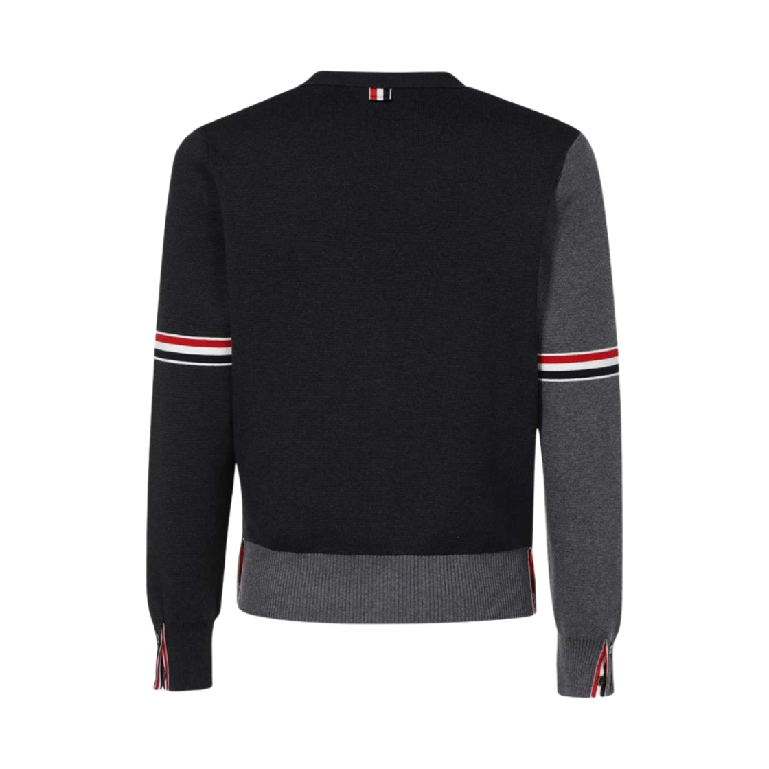 Thom Browne RWB Stripe Cotton Milano Stitch V-Neck Cardigan Tonal Grey
