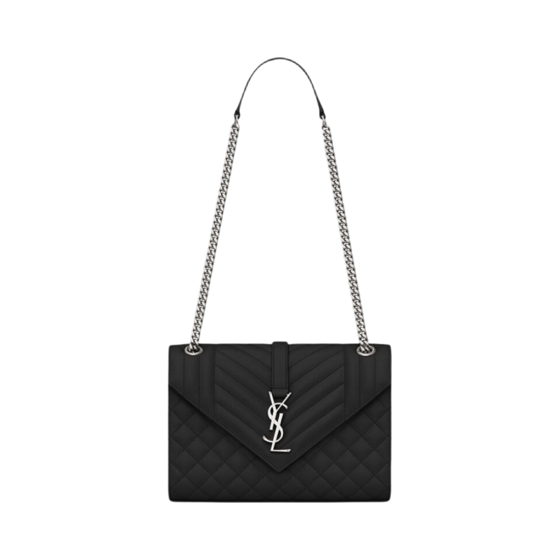 Saint Laurent Envelope Medium Chain Bag in Mix Matelasse Grain De Poudre Embossed Leather Black
