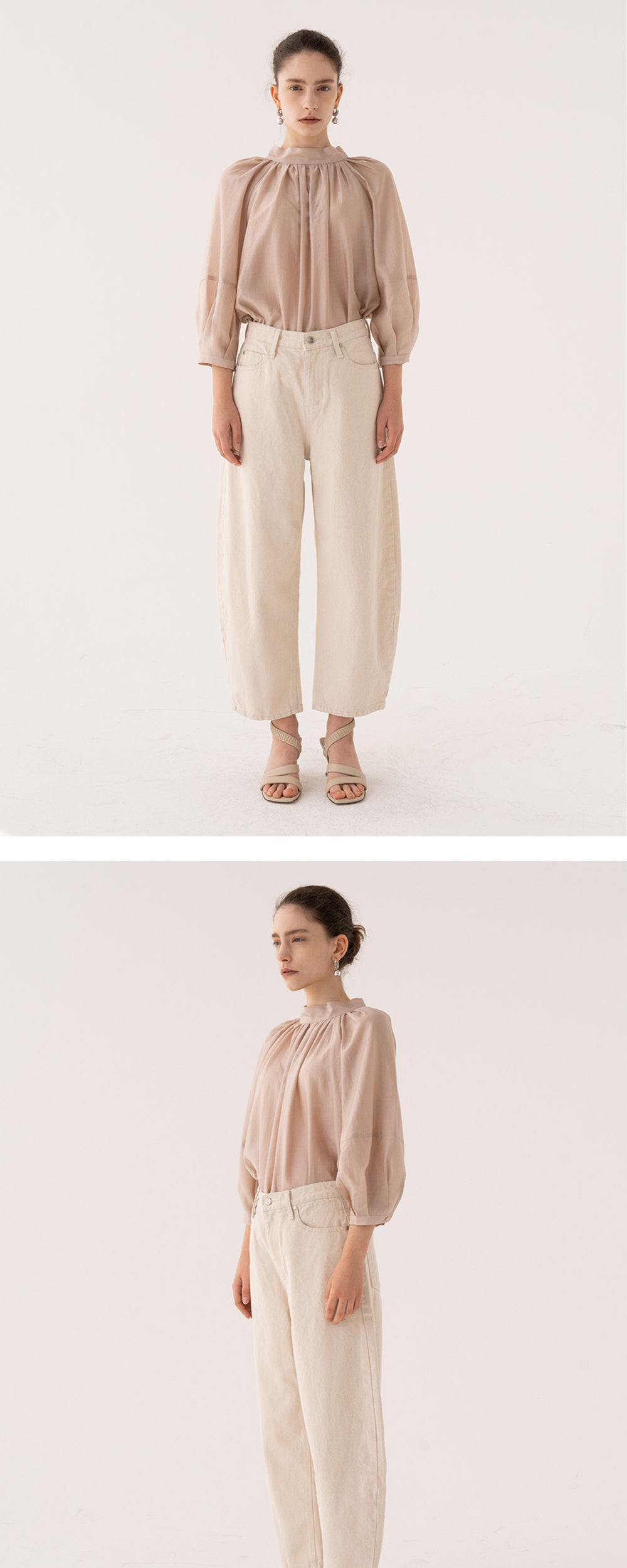 Sheer fabric 으로 제작된 우아한 디자인의 블라우스 입니다. 발론쉐잎의 소매 디테일이 특징이며 뒷중심 혼솔지퍼로 오픈 클로징을 할 수 있습니다.우아한 핏의 블라우스로 감각적인 분위기의 실루엣을 연출해보세요.