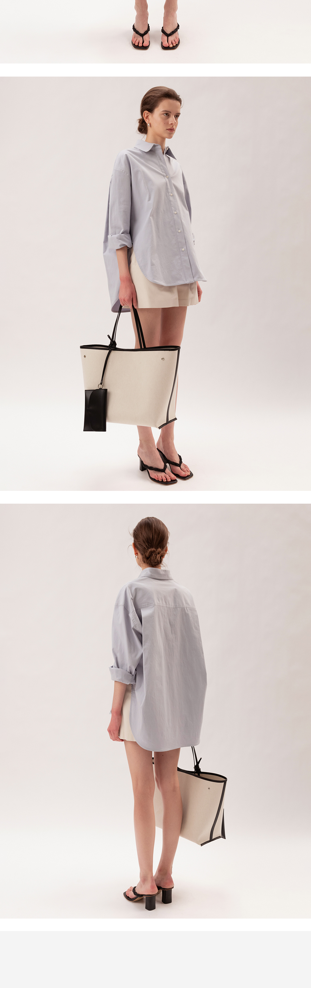 오버사이즈 핏의 고시감이 있는 셔츠입니다.천연 자개 단추를 사용했습니다. 안에 이너를 착용하여 배색을 주어도 좋고, 단품으로도 멋스러운 연출인 가능한 아이템입니다. 면 함유량이 높은 셔츠로 계절에 바뀌는 시기에 착용하기 이상적입니다.