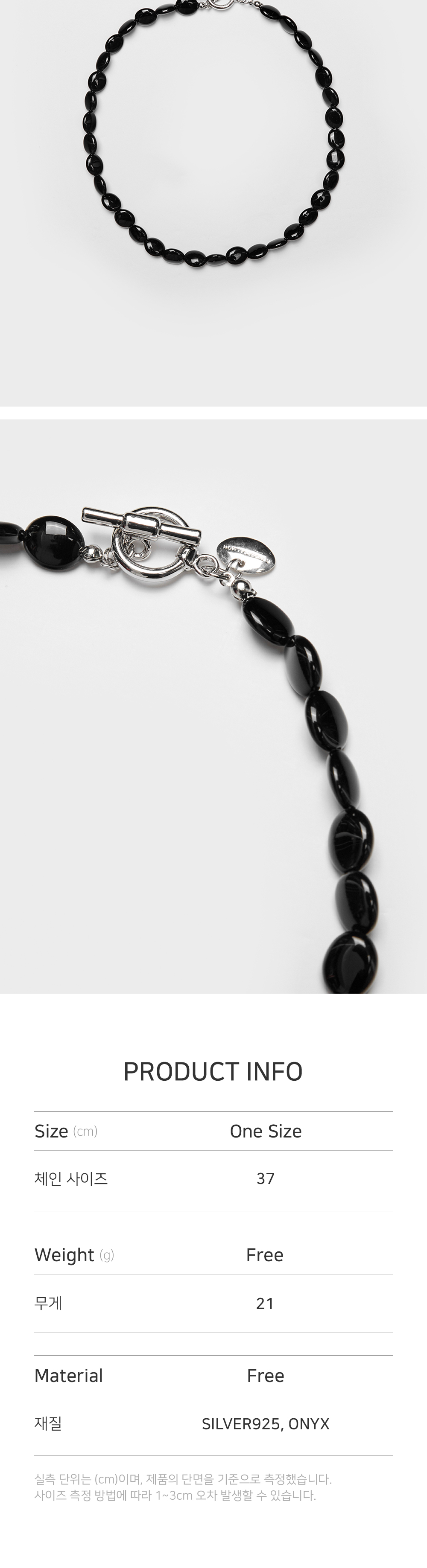 silver925와 오닉스 스톤으로 제작된 목걸이 입니다. 블랙의 오닉스 스톤을 사용해 시크한 무드를 연출할 수 있으며 캐주얼한 룩에 매치하기 좋은 제품입니다.