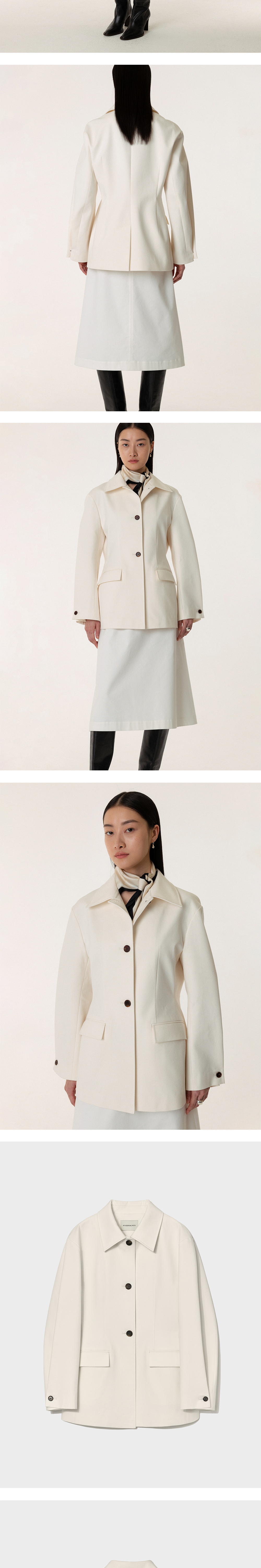 킨더살몬 우먼 아워글래스 쉐입 하프 자켓 오프 화이트