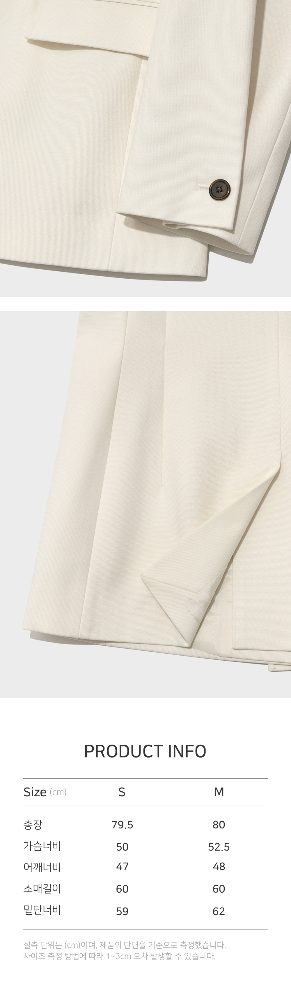 | 총장 | 가슴너비 | 어깨너비 | 소매길이 | 밑단너비 |