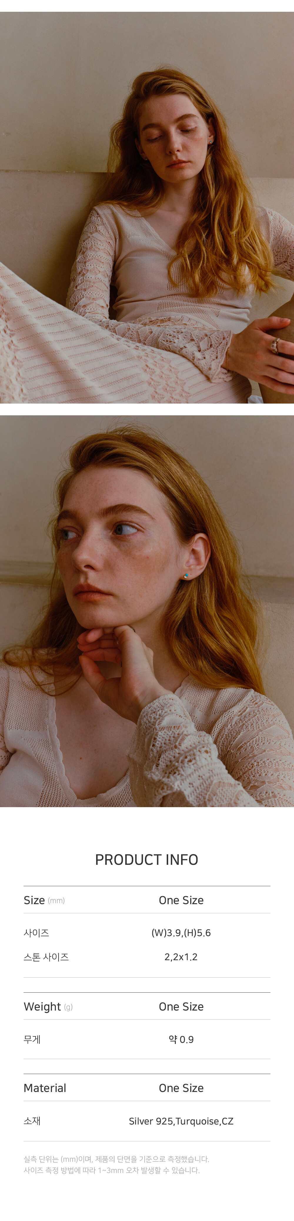 작지만 터키석의 빈티지한 민트 컬러와 지르코니아의 반짝임이 돋보이는 이어링입니다. 마망에필레는 오더메이드 방식으로 주문 후 교환 및 환불이 불가합니다. 제작 기간은 주말과 공휴일을 제외하고 10-14일 소요됩니다. 샘플과 최대한 같은 형태로 제작하고 있으나 핸드메이드 특성상 근소한 차이가 있을 수 있습니다. 기타 문의사항은 CS 010 8468 3791 또는 카카오톡 mamanetfille으로 연락 주시기 바랍니다. 빠른 기간 내에 받아 보셔야 하는 경우에는 CS 010 8468 3791로 문의하시기 바랍니다.
