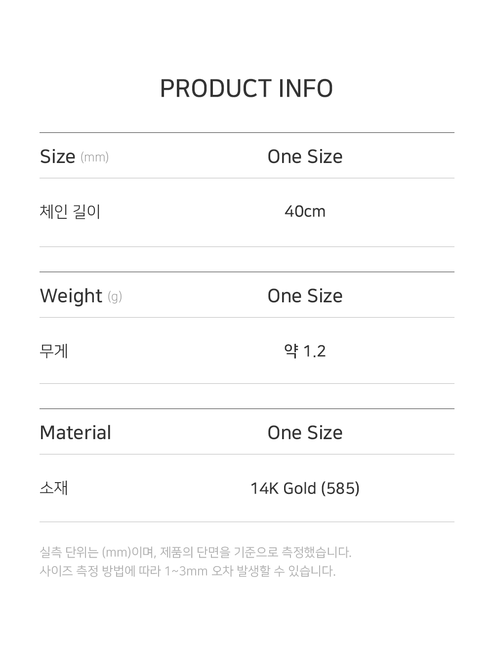 측정 방법에 따라 사이즈에 일부 오차가 있을 수 있습니다.