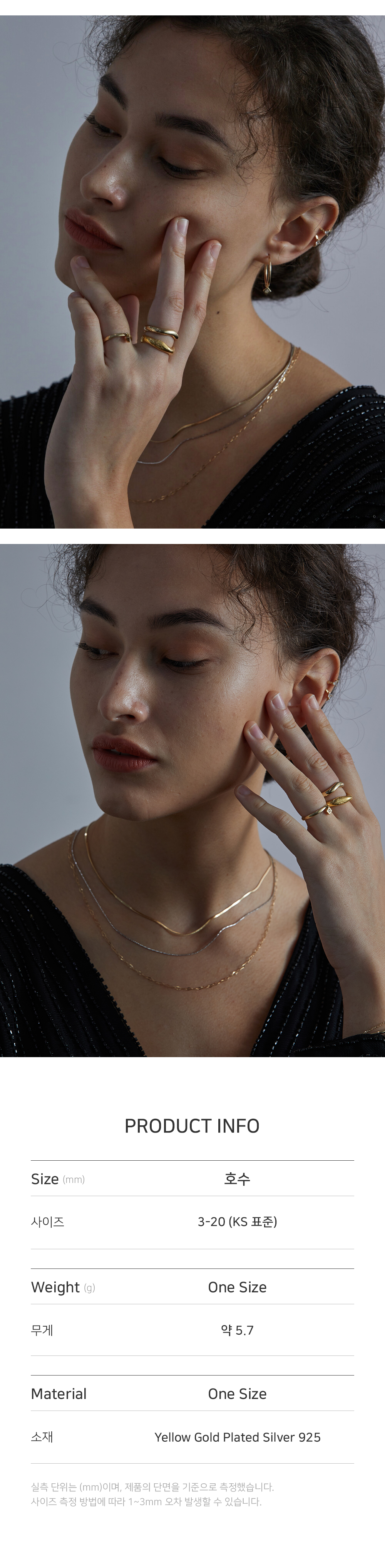 물결의 느낌이 나는 각도마다 조금씩 다른 링입니다. 마망에필레는 오더메이드 방식으로 주문 후 교환 및 환불이 불가합니다. 제작 기간은 주말과 공휴일을 제외하고 10-14일 소요됩니다. 샘플과 최대한 같은 형태로 제작하고 있으나 핸드메이드 특성상 근소한 차이가 있을 수 있습니다. 기타 문의사항은 CS 010 8468 3791 또는 카카오톡 mamanetfille으로 연락 주시기 바랍니다. 빠른 기간 내에 받아 보셔야 하는 경우에는 CS 010 8468 3791로 문의하시기 바랍니다.