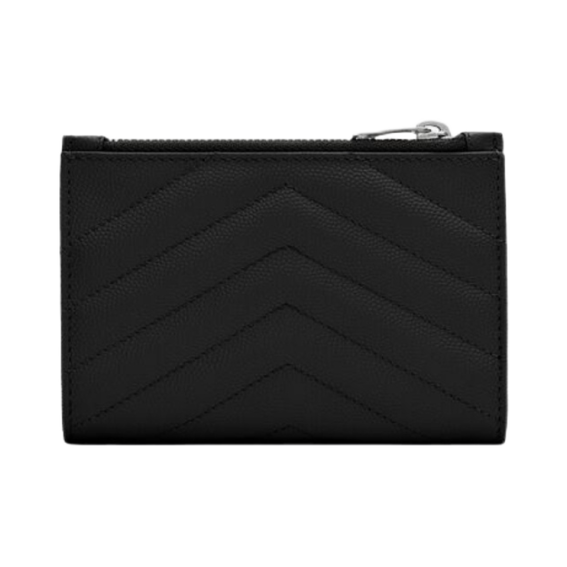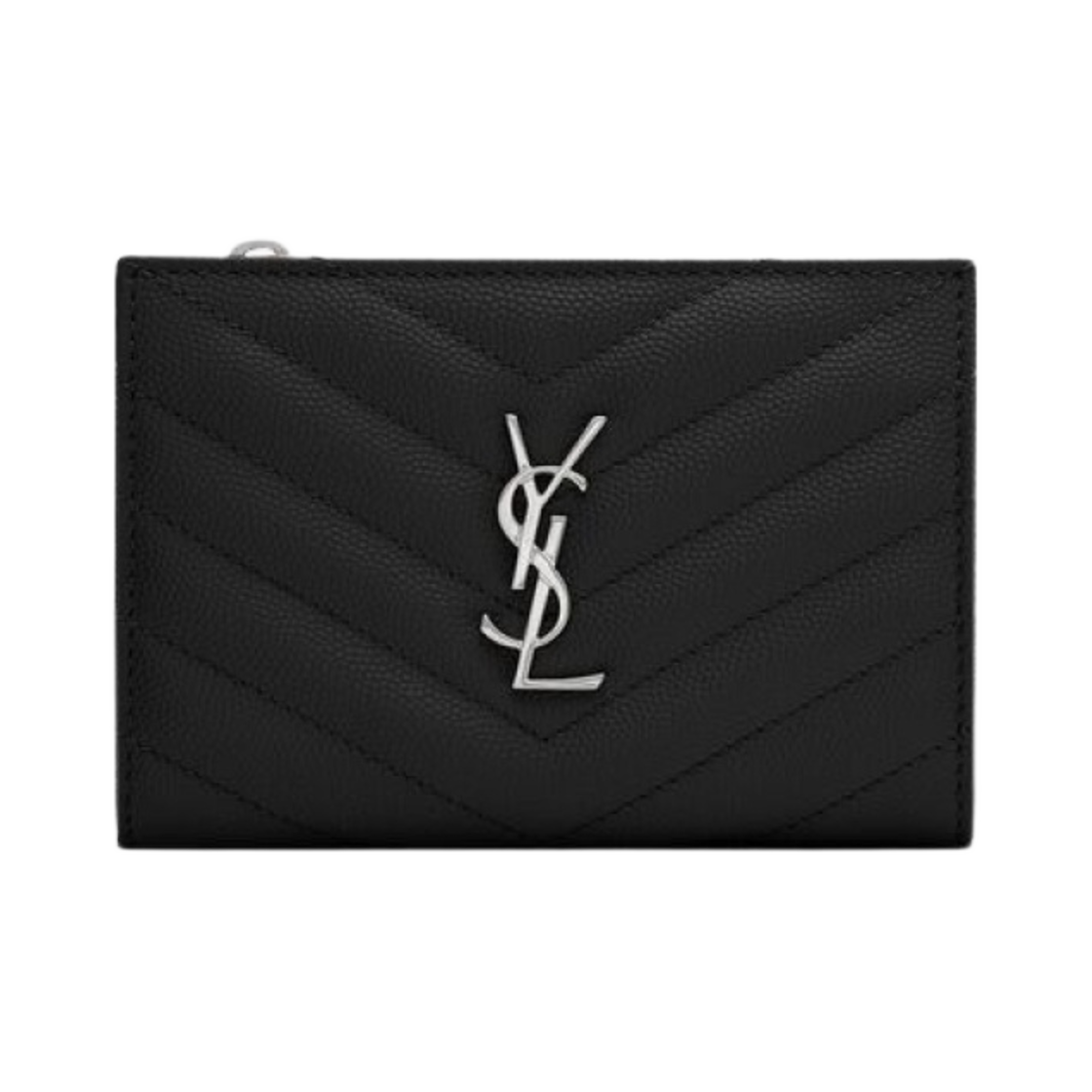 Saint Laurent Cassandre Matelasse Fragments Zipped BI-Fold Wallet in Grain de Poudre Embossed Leather Black