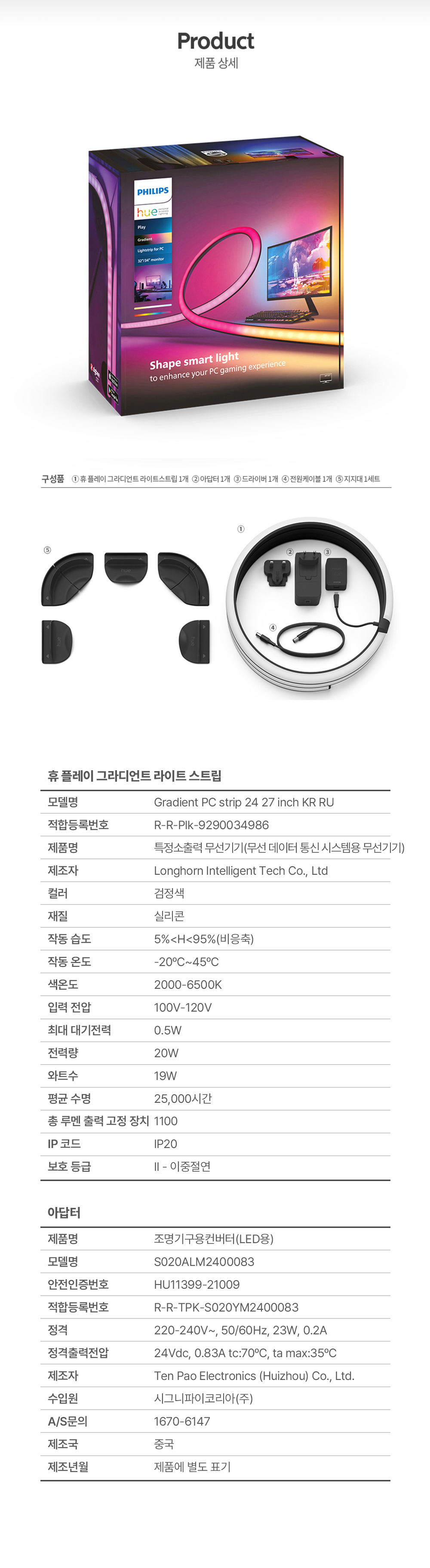 필립스 휴 24-27 플레이 그라디언트 PC 모니터 라이트스트립 60-68cm