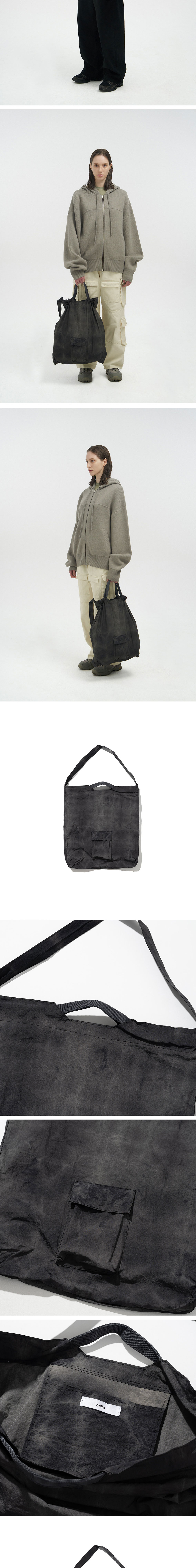 -타이다이 워싱 베이스 원단 사용 -숄더백 자체로 우수한 디자인 완성도 -유연한 실루엣으로 코디 활용도 높음 -숄더백과 핸드백으로 사용이 가능하도록 고안된 디자인 백 -다양한 크기의 물건 수납을 위한 포켓 디테일 -가벼운 무게로 실용성 극대화