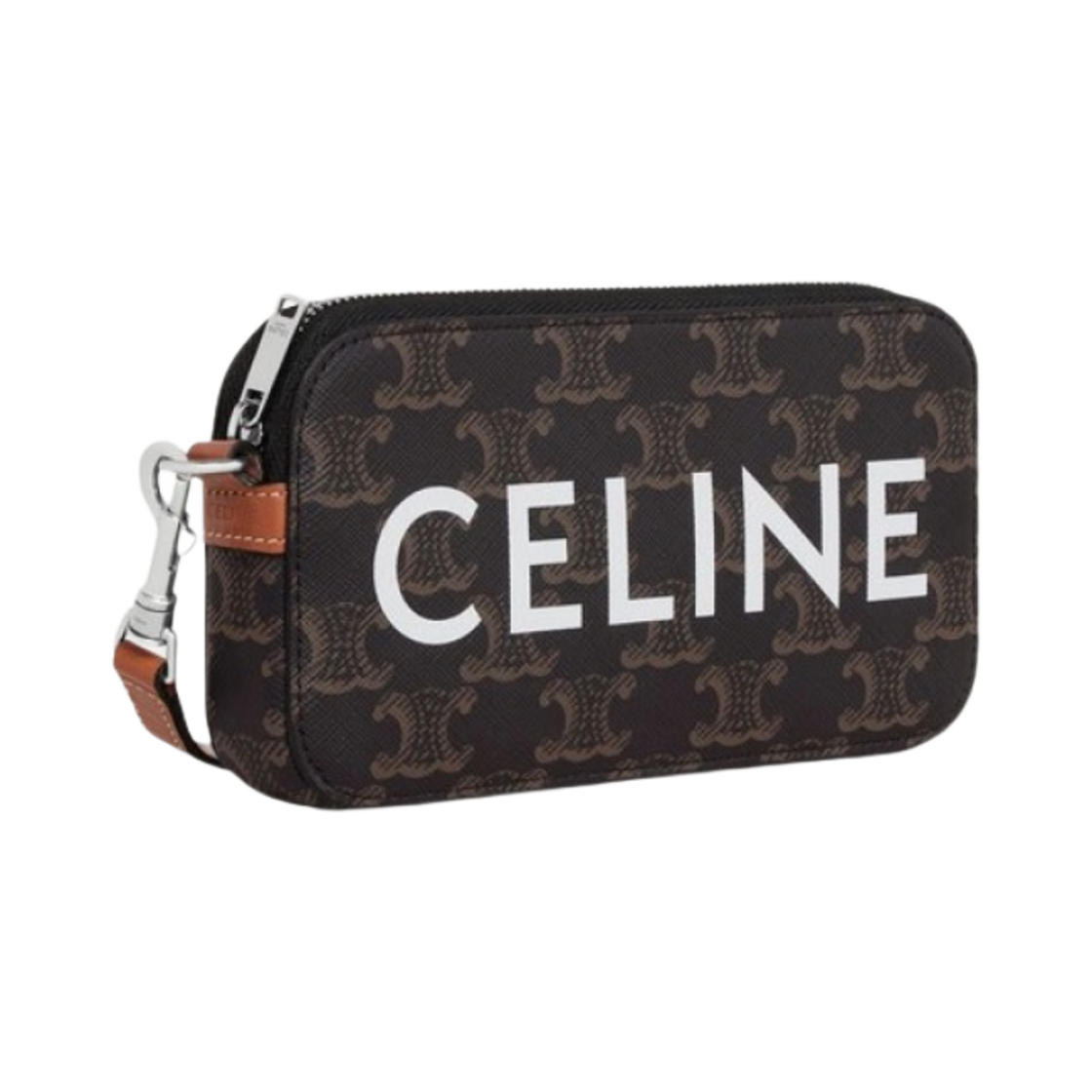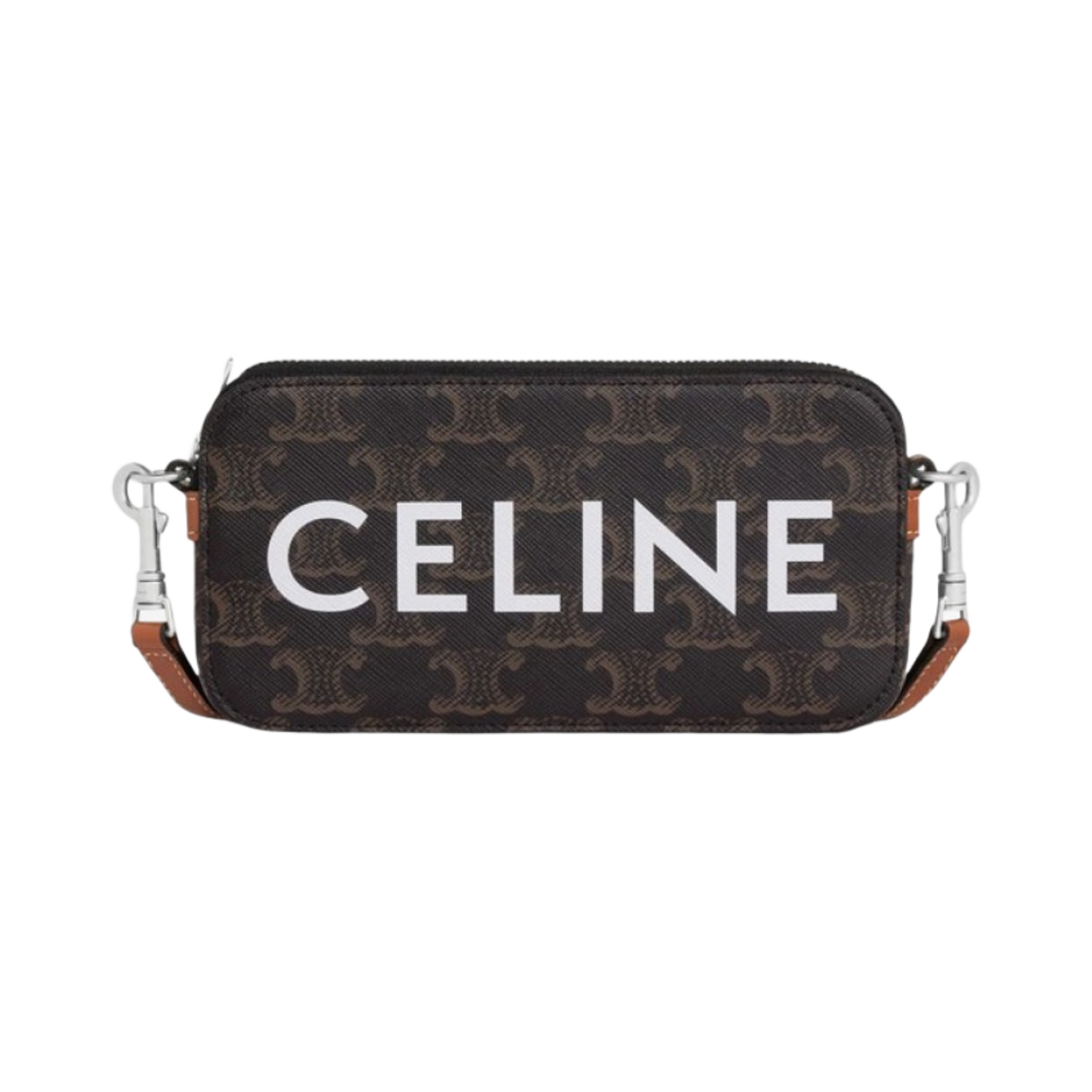 셀린느 트리옹프 캔버스 셀린느 프린트 호리존탈 파우치 탄
