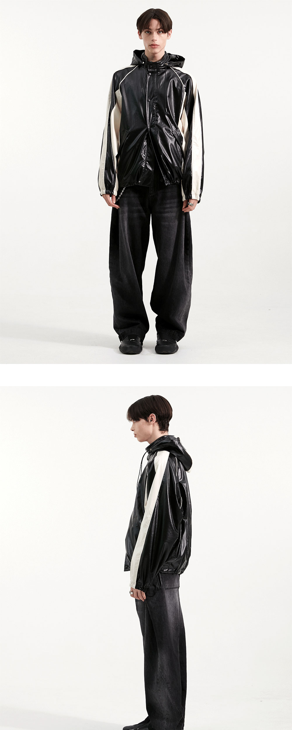 크링클 가공 처리한 레더 필름지의 면 폴리 소재로 제작된 후디드 파카입니다. 알렌느의 시그니처인 3D절개 디테일을 극대화로 활용하였으며 파이핑/배색 디자인으로 유나크함을 더했습니다. 모델 185/65 2사이즈 착용