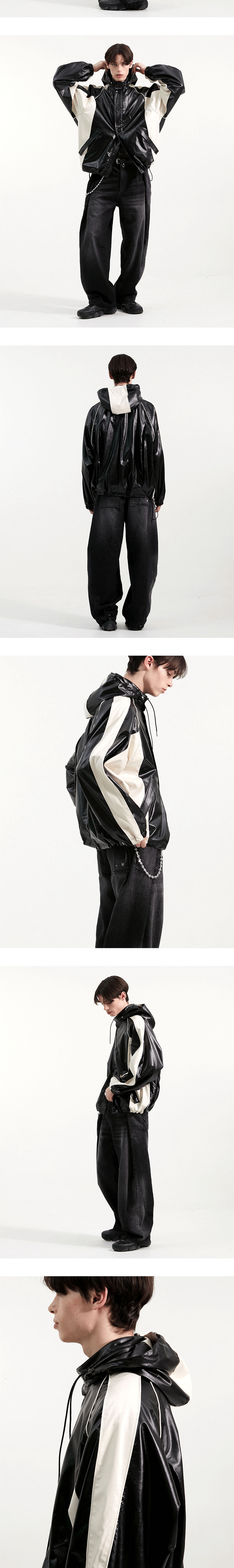 [KREAM 단독] Haleine Faux Leather 3D Piping Hooded Parka Black Kream