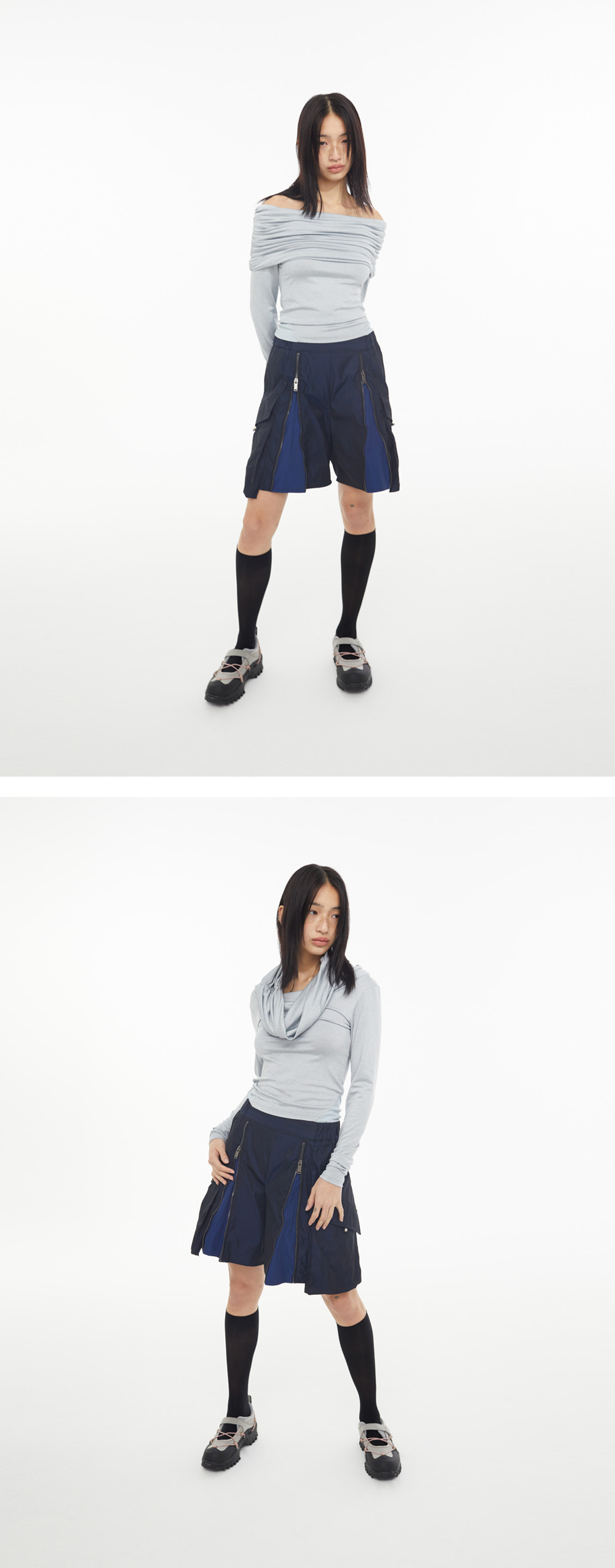 쿄 우먼 쓰리웨이 셔링 오픈숄더 티셔츠 실버