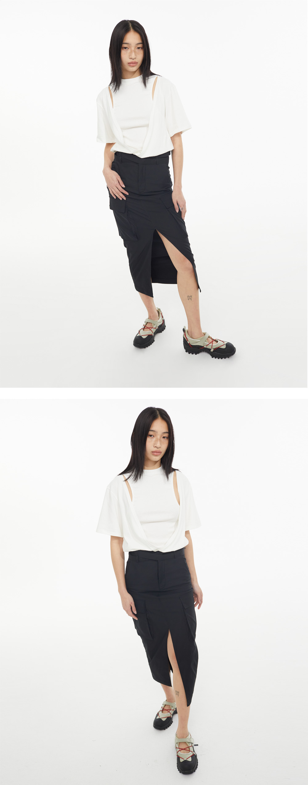 쿄 우먼 스쿱레이서 레이어드 컷아웃 크롭 티셔츠 오프화이트