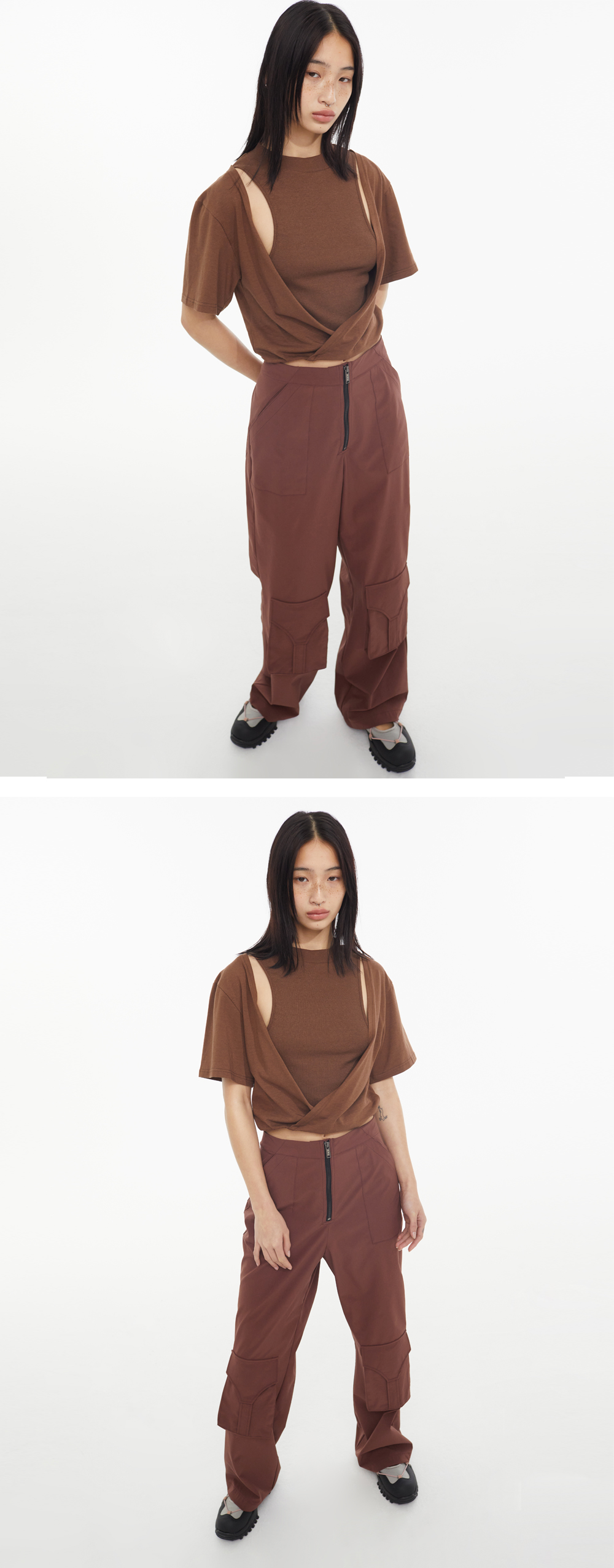 쿄 우먼 스쿱레이서 레이어드 컷아웃 크롭 티셔츠 브릭