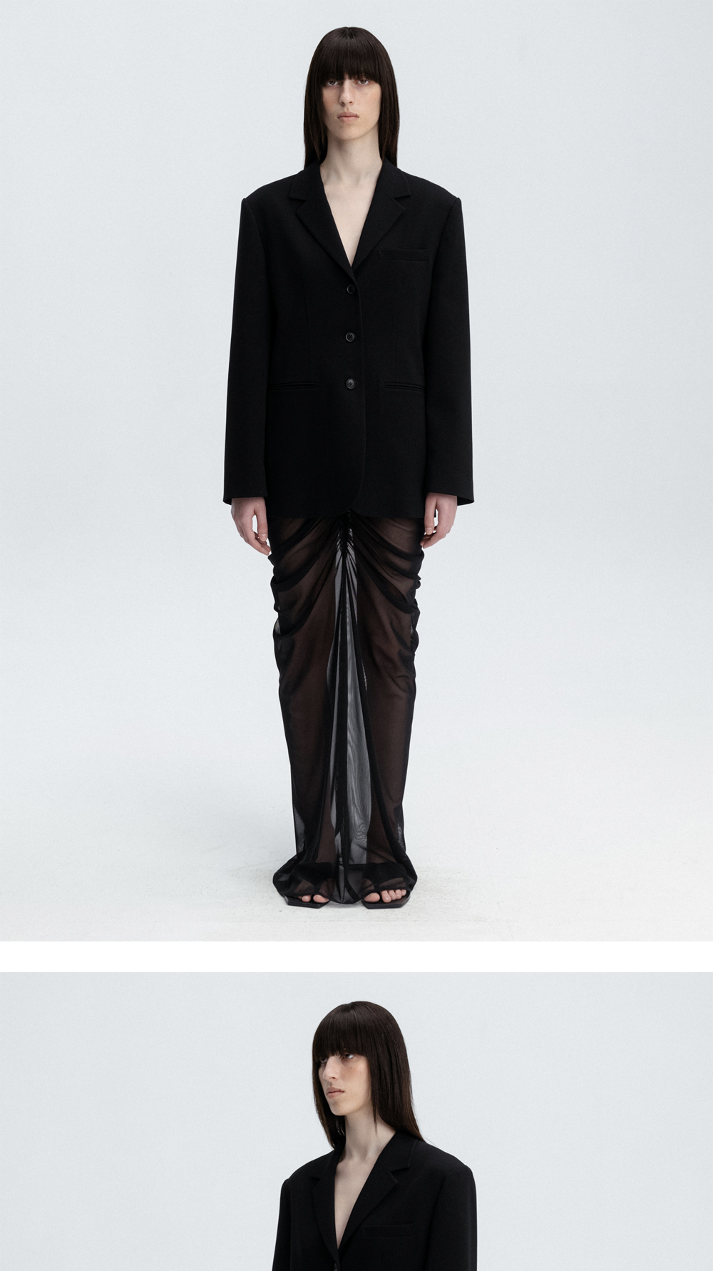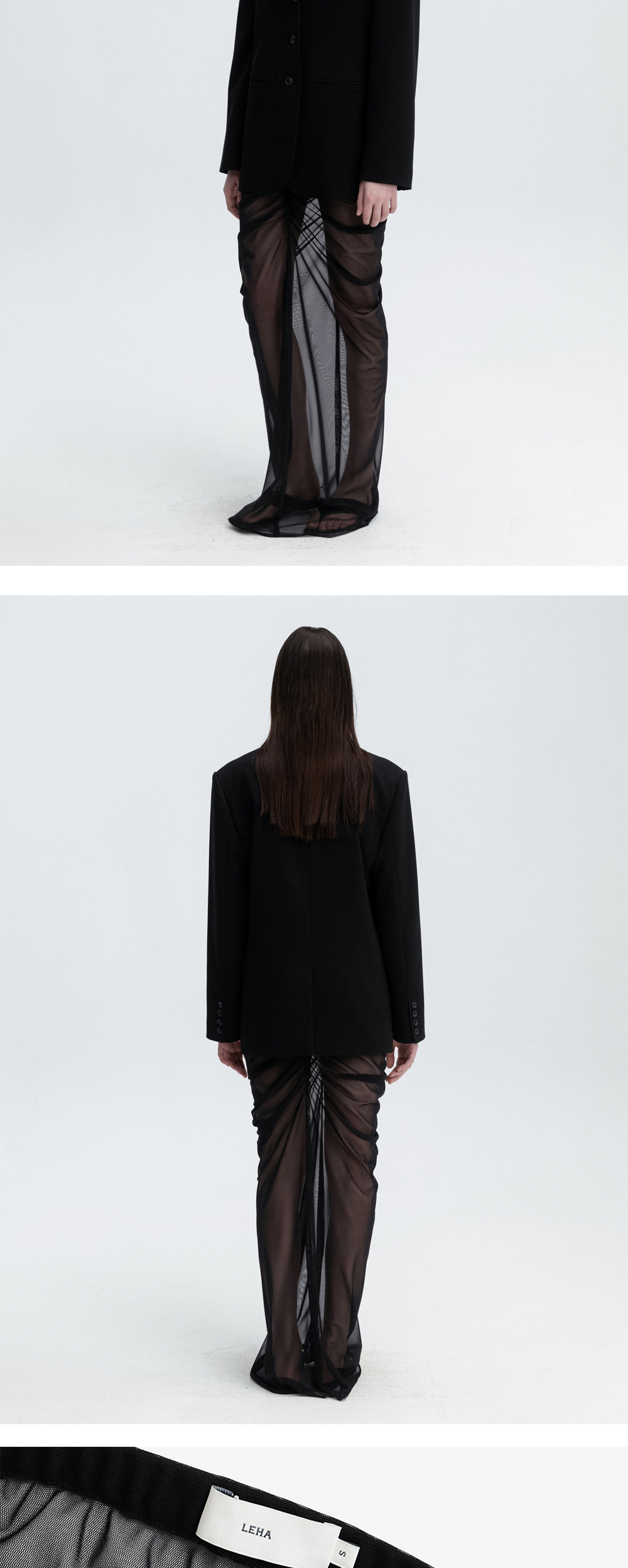 레하 우먼 시어 레이어링 드레이프드 스커트 블랙