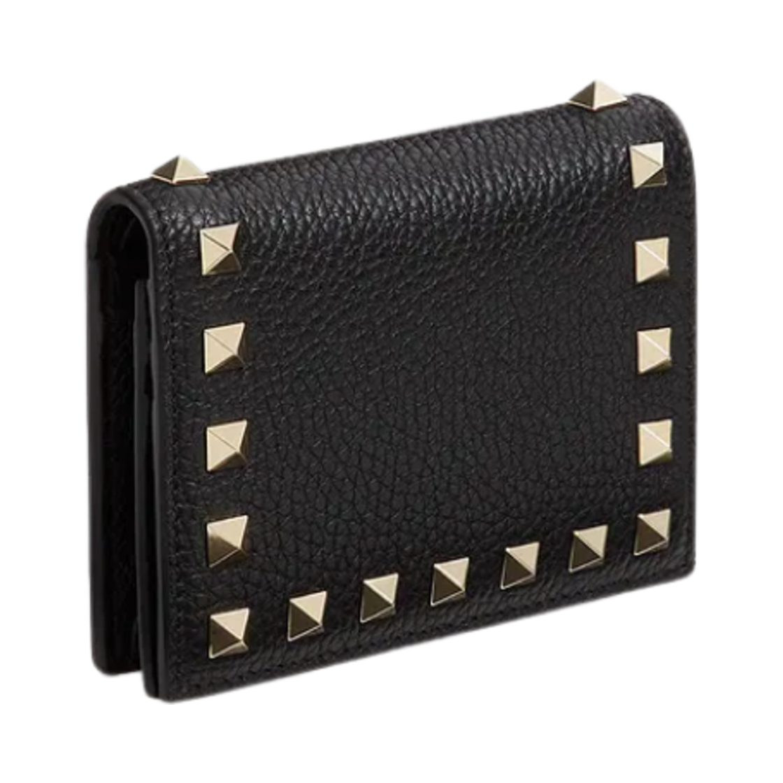 Valentino Small Rockstud Grainy Calfskin Wallet Black
