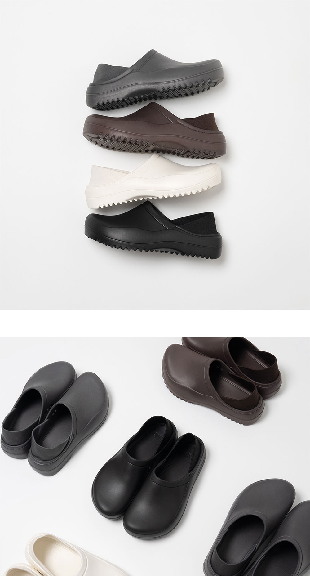 -4회의 디테일 수정 진행 후 금형을 진행한 밀로만의 독자적인 클로그 디자인 -유일한 밴드 디테일로 쉽게 벗겨지지 않는 클로그 -EVA 소재를 사용하여 마모에 강하며 내구성 및 충격 흡수가 매우 우수 -폴리에스터 원단의 립 사용으로 뒷축의 복원성과 탄성력이 좋음 -다양한 코디 매칭과 스타일링 확장을 위해 신규 컬러 추가 출시 -310g의 매우 가벼운 무게, 전체적으로 여유 있는 발 볼 사이즈 -사이즈 별 5mm 크게 제작하여 정 사이즈 추천 (뒷축을 활용해 구겨신는 고객님의 경우 1업 추천) -모델 스펙 남자 (에릭) 186cm/ 65kg 피팅 사이즈 280 여자 (엔젤) 176cm / 50kg 피팅 사이즈 260